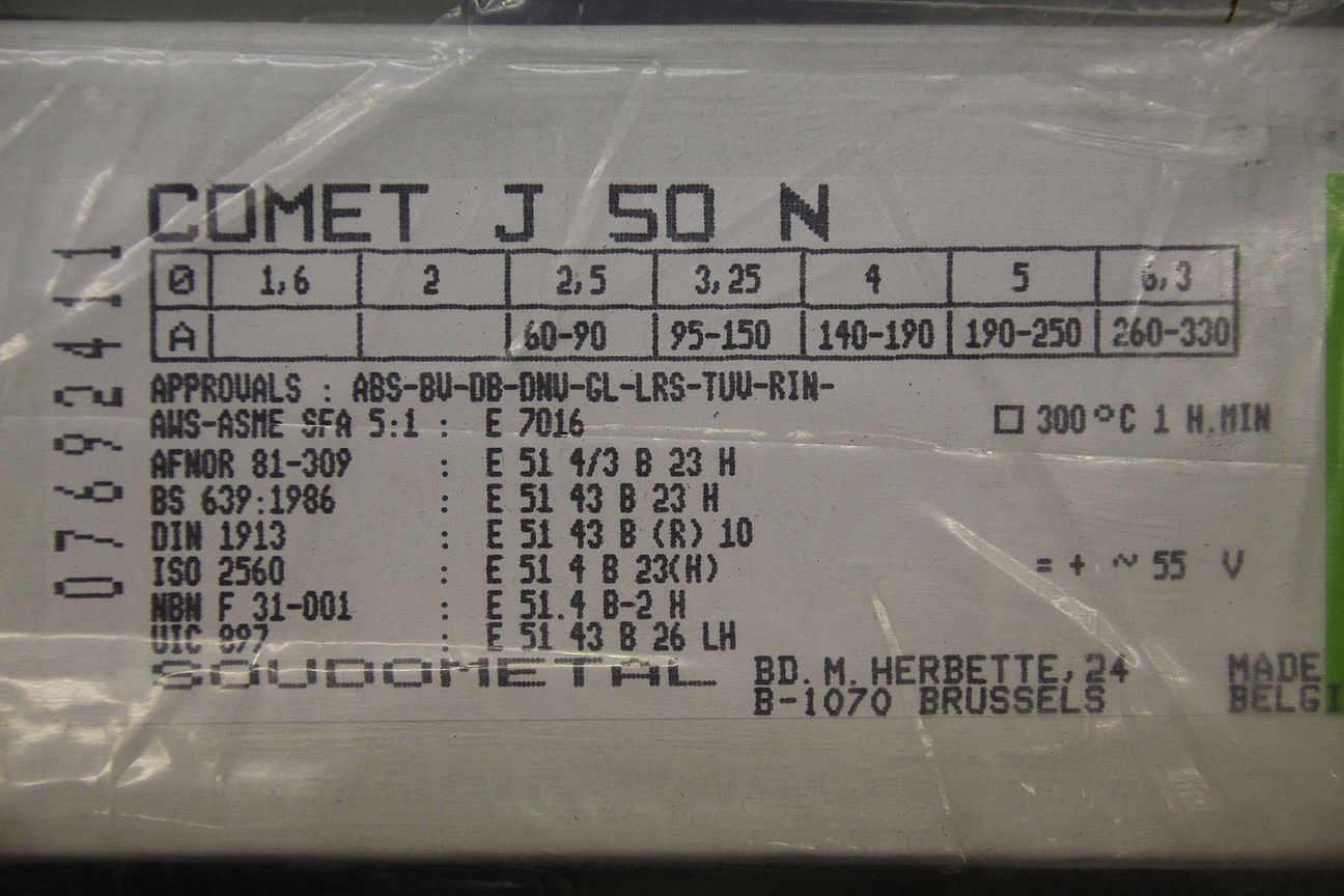 Stick electrodes 2.5 x 350-Type: COMET J50N-Price: per package-Number: 4 packages available-Weight per package: 4.1 kg