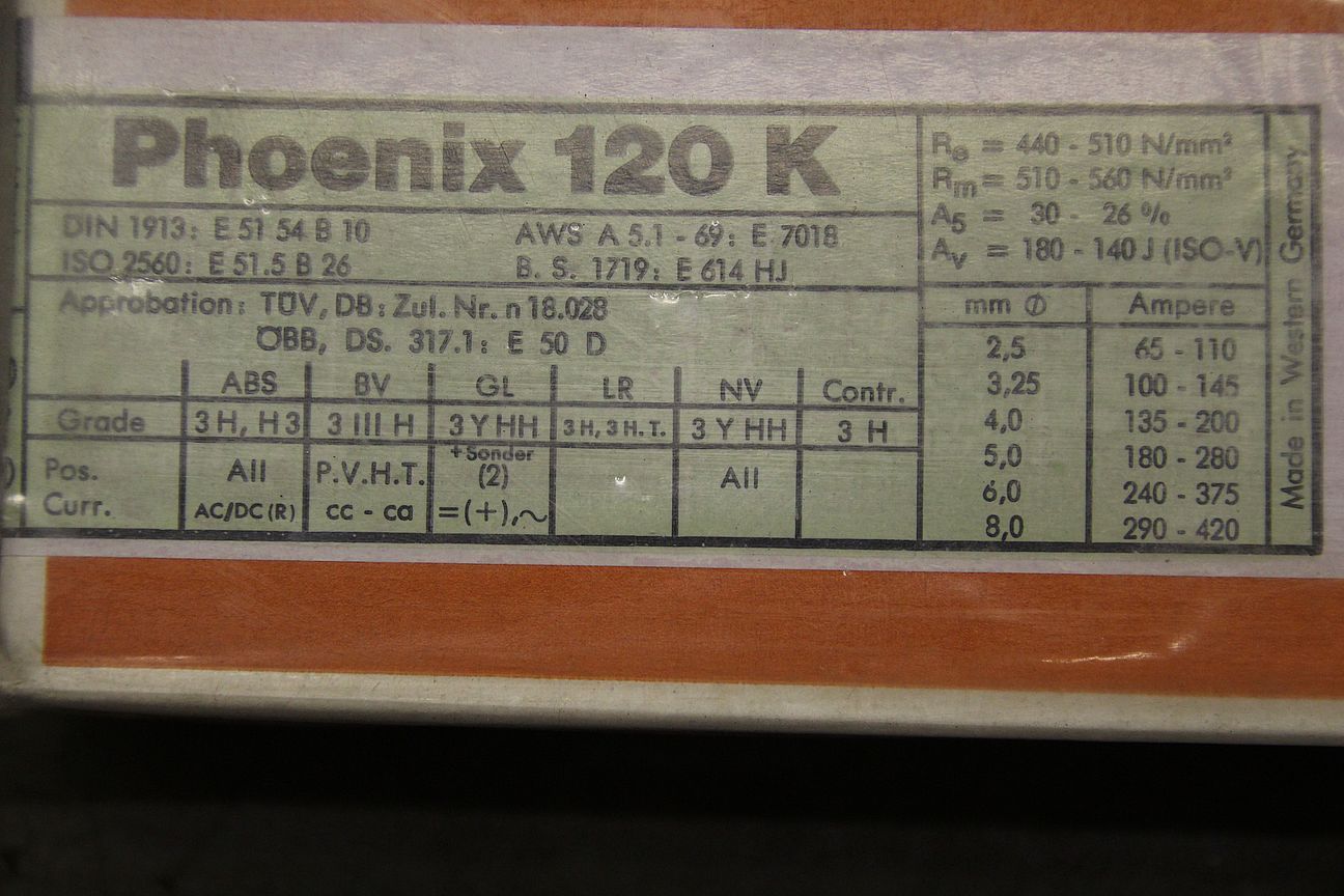 Stick electrodes 2.5 x 250-Type: Phoenix 120K-Price: per package-Number: 16 packages available-Weight per package: 3.3 kg