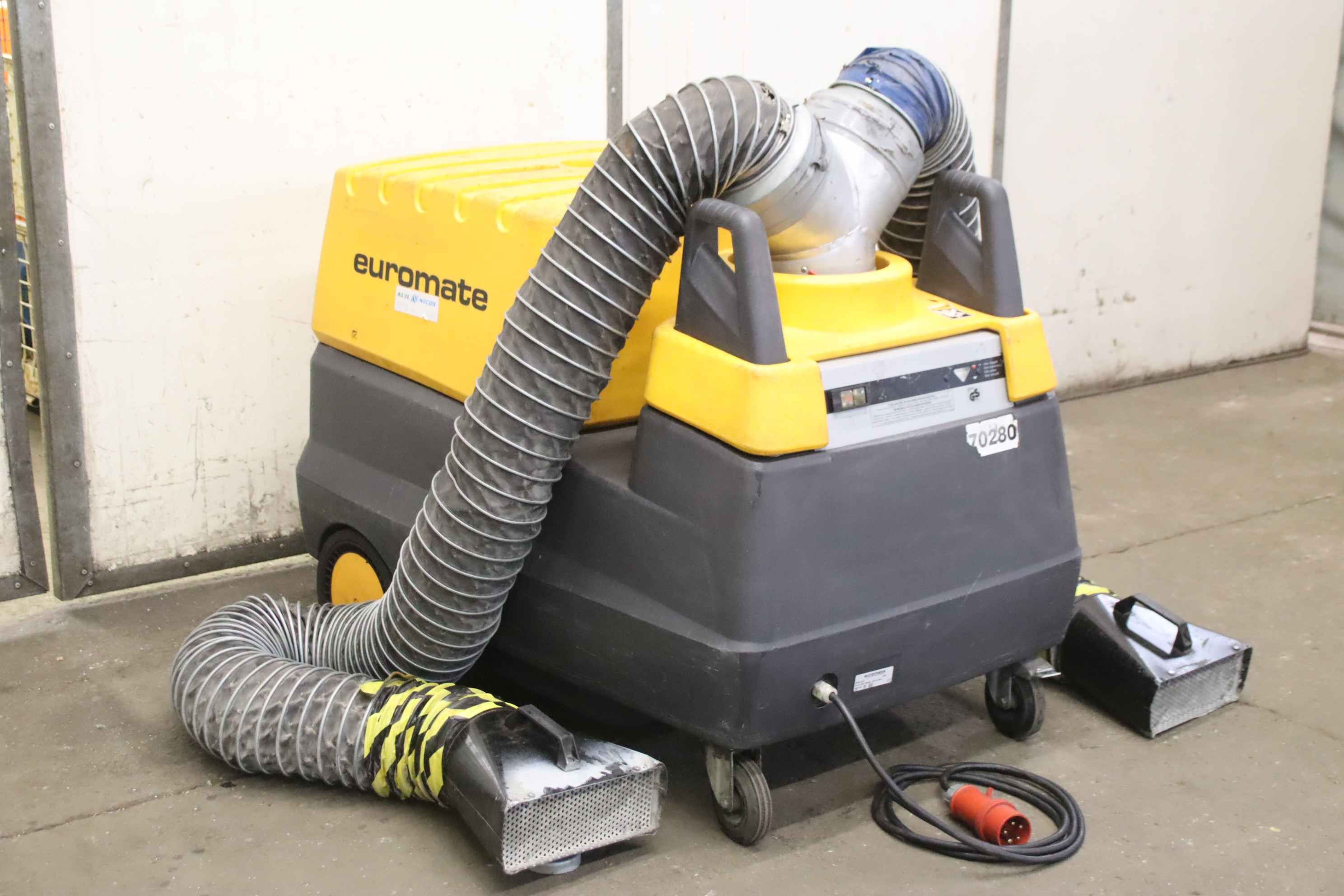 Welding fume filter, welding fume extraction, soldering fume extraction, mobile filter unit, welding fume extractor-Manufacturer: Euromate, mobile welding fume extraction with 2 extraction pipes-Type: MFD-Drive: 0.75 kW-Filter: with contamination indicator-Suction pipes: length 2900 mm-Transport dimensions: 1200/800/H1100 mm-Weight: 101 kg
