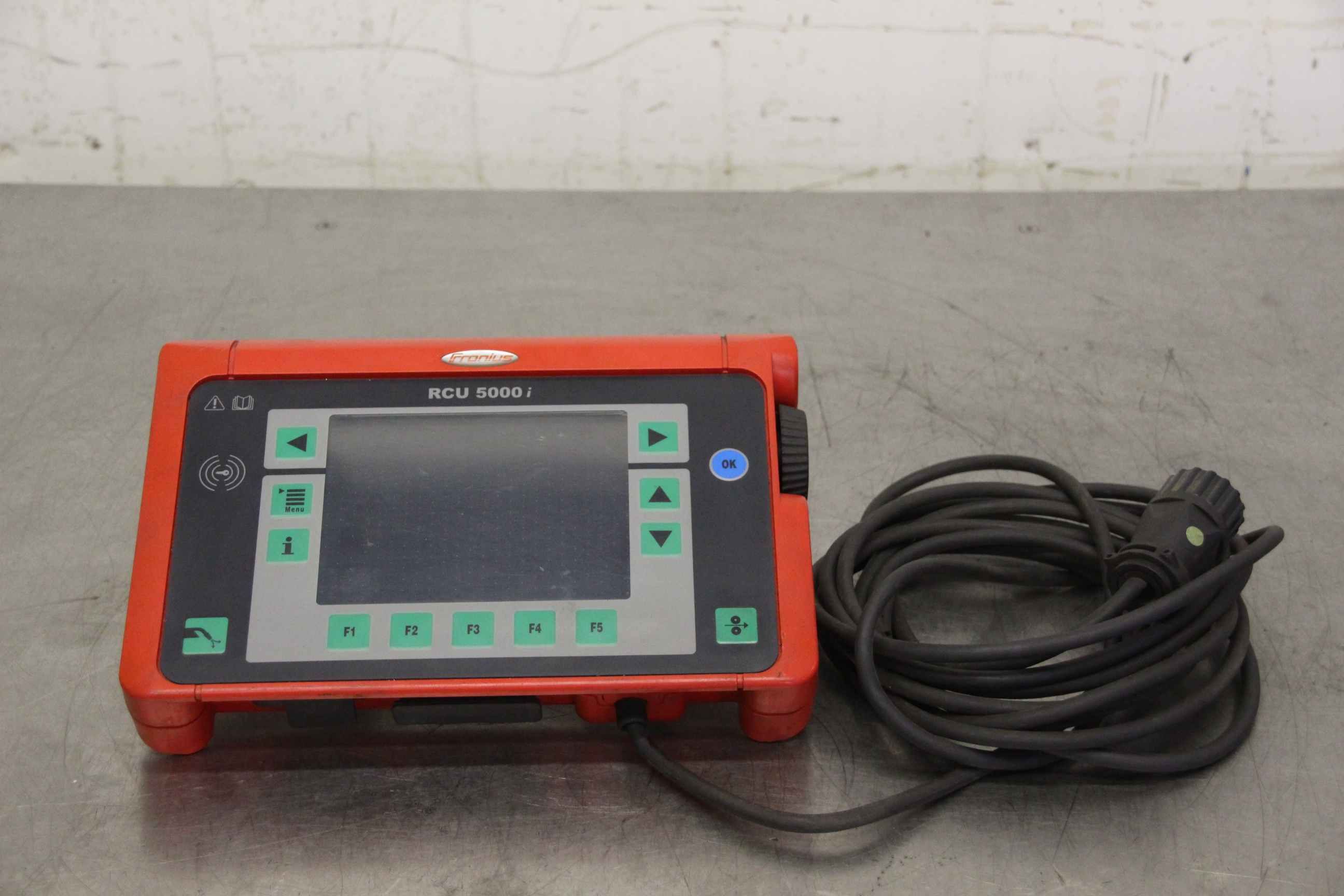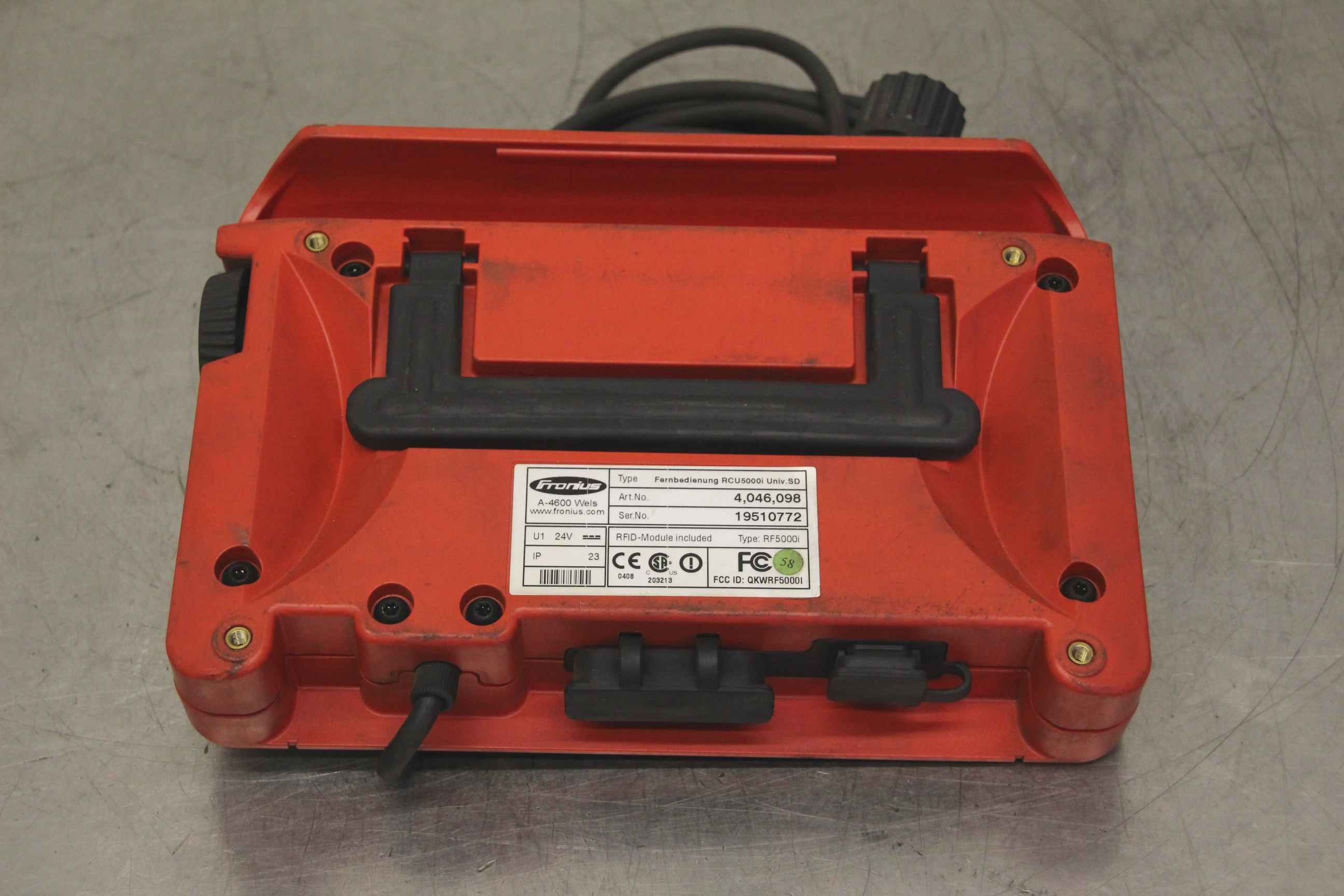 Remote control for inert gas welding device, inert gas device, welding rectifier, hand controller-Manufacturer: Fronius, remote control RCU5000i Univ.SD-Art.No.: 4,046,098-Voltage: U1 24 V-Dimensions: 180/260/H50 mm-Weight: 1.5 kg