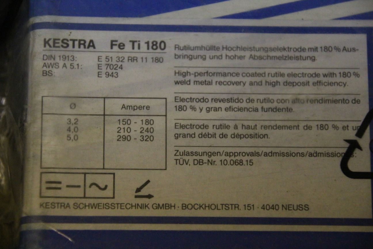 Stick electrodes 3.2 x 450-Type: KESTRA Fe Ti 180-Price: per package-Number: 3 packages-Weight: 5.9 kg