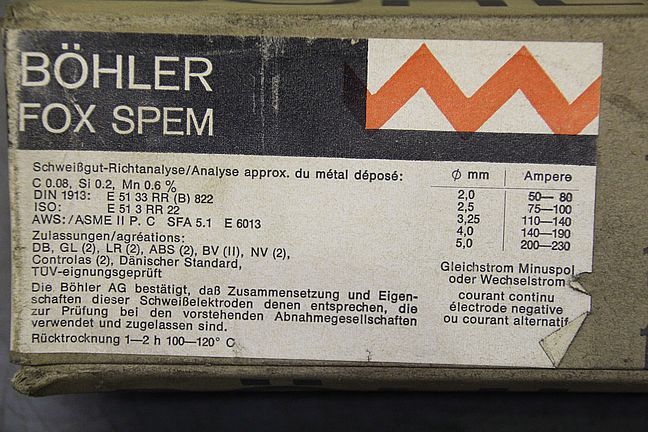 Stick electrodes 2.5 x 250-Type: FOX SPE-Price: per package-Number: 16 packages available-Weight per package: 3.4 kg
