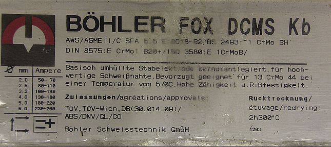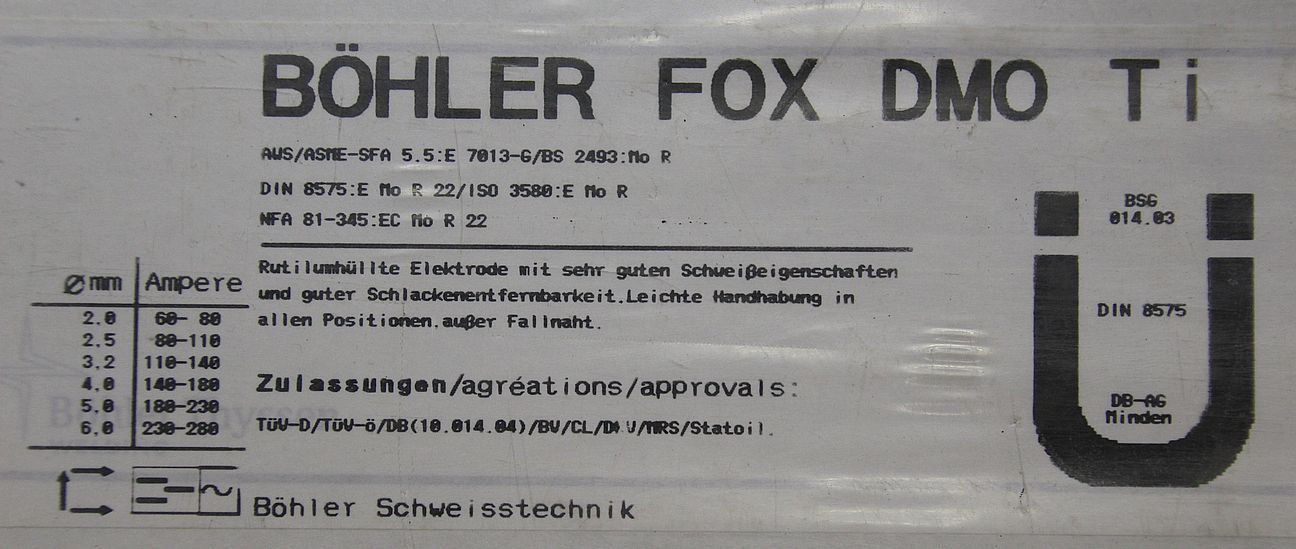 Stick electrodes 4.0 x 350-Type: FOX DMO Ti-Price: per package-Number: 6 packages available-Weight per package: 4.6 kg