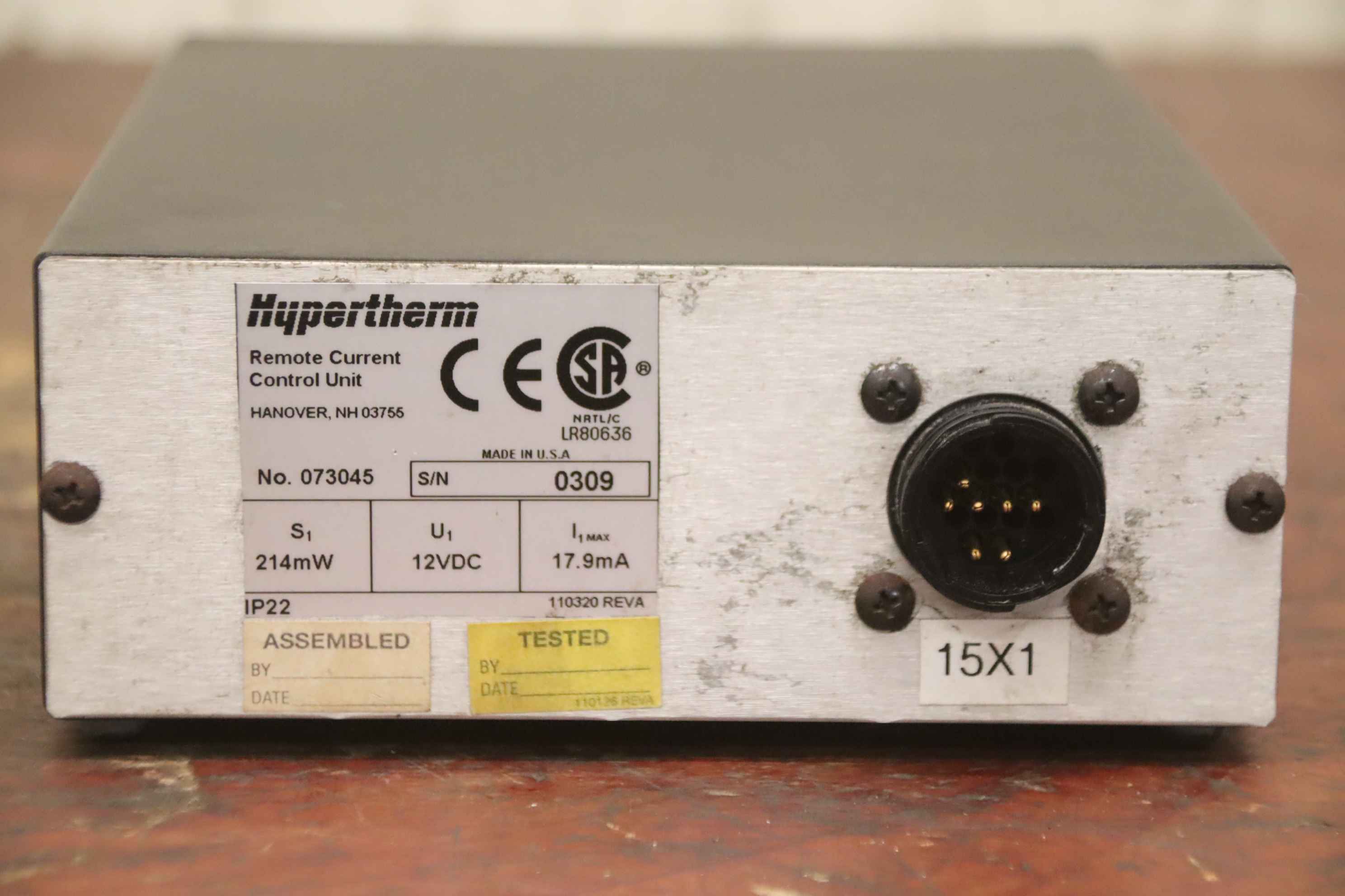 Plasma cutting machine, remote current control unit, current selector switch-Manufacturer: Hypertherm, Remote Current Control Unit current selector switch-Type: 073045 from plasma cutting machine HT2000LHF-Dimensions: 230/165/H70 mm-Weight: 1.1 kg