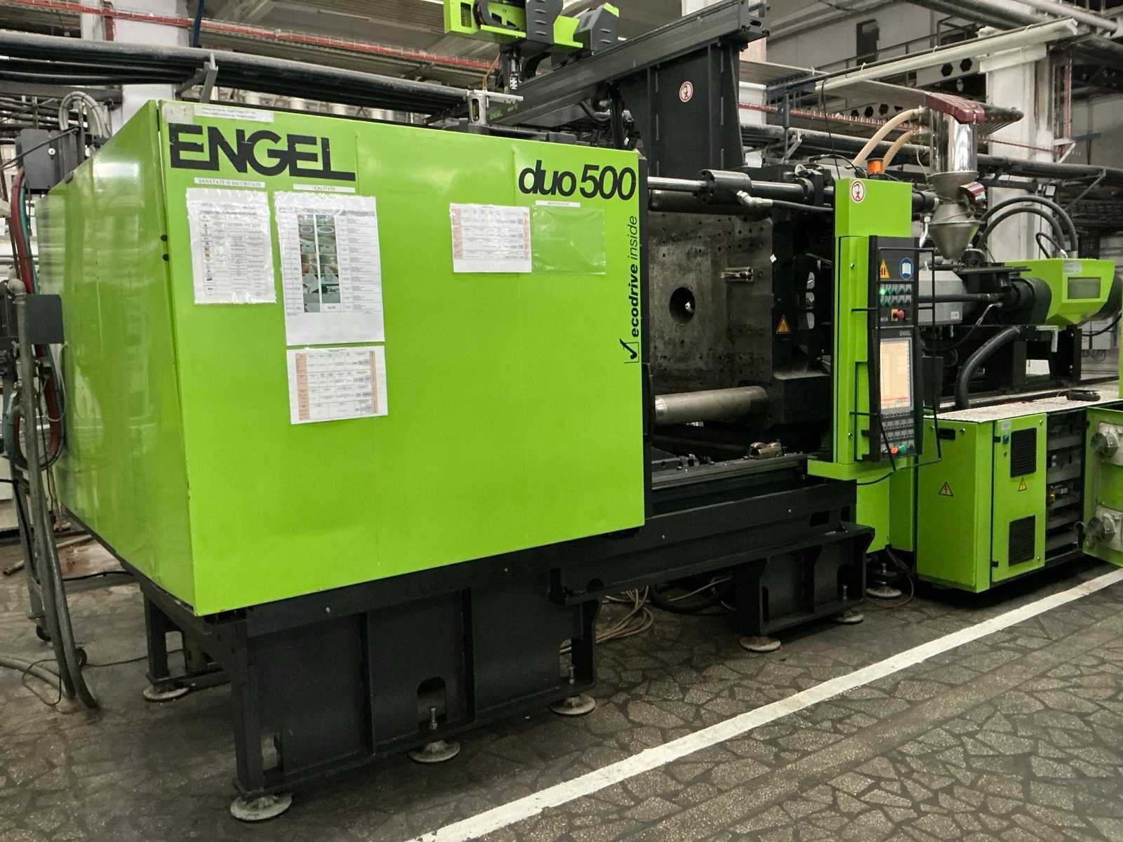 Injection Unit Engine not working Screw Diameter: 65 Ø Injection Volume: approx. 1,025 cm³ Injection Pressure: up to 1,800 bar Injection Rate: approx. 450 cm³/s Plasticizing Capacity: approx. 80 g/s (PS) Nozzle Contact Force: 100 kN Clamping Unit Clamping Force: 5,000 kN (500 t) Clamping System: ENGEL Duo two-platen design Platen Size (H × V): approx. 1,300 × 1,200 mm Mould Opening Stroke: 800 mm Max. Daylight Opening: approx. 1,400 mm Min. Mould Height: 400 mm Ejector Stroke: 200 mm Ejector Force (fwd / back): 90 / 60 kN Drive & Control Drive Type: Servo-hydraulic (ecodrive inside) Hydraulic System Pressure: up to 160 bar Pump Motor Power: 37 kW Total Installed Power: approx. 55 kW Power Supply: 400 V / 50 Hz / 3-phase Control System: ENGEL CC300 touchscreen control Equipment / Features Clamping System: Two-platen design for high rigidity and space efficiency Energy Effi ...