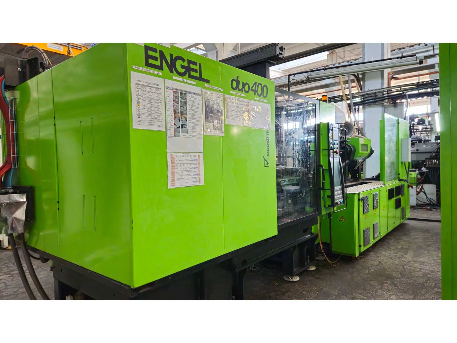 Machine type: Injection moulding machine Manufacturer: ENGEL Model: Duo 3550/400 Pico Year of manufacture: 2013 Serial number: 191000 Clamping force: 400 t Clamping system: Two-platen Hydraulic system pressure: up to 160 bar Drive system: Servo-hydraulic ecodrive inside” Pump motor power: 30 kW Total installed power: approx. 45 kW Power supply: 400 V / 50 Hz / 3-phase Control system: ENGEL CC300 control unit Control features: Colour touchscreen, integrated process monitoring Equipment / Features: - Automatic central lubrication system - Safety interlocks on operator and service sides - Energy-efficient servo-hydraulic drive - Designed for large technical and automotive moulding applications Overall dimensions (L x W x H): approx. 6800 x 1900 x 2400 mm Own mass: approx. 11,000 kg Auction-ID: A7-44836-1