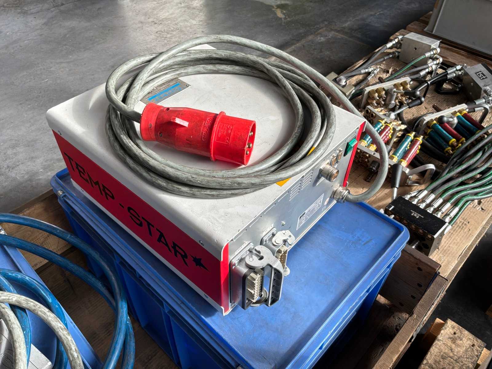 Serial Number: 154812 • Power: 400 V, 3 Phase, 50 Hz • Condition: Used • Additional Notes: Electrical data per nameplate: total current 107 A; main fuse 125 A; motor current 60 A; CE marked. Equipped with peripheral handling equipment visible (conveyors, temperature control unit, material hoses) Auction-ID: A7-40551-17