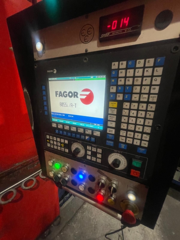 faceplate diameter: 4000 mmswing diameter: 4200 mmturning height: 2000 mmworkpiece weight: 50000 kgcross travel of ram-slide: 2300 mmslides vertical travel: 1250 mmswival range +/-: -15/+30 Gradfaceplate turning speed range: 0,5 - 55 U/minControl: Fagor 8055i CNC total power requirement: 182 kWweight of the machine ca.: 134 tdimensions of the machine ca.: 5920 x 10200 x 8400 mmMachine overhauled in 2008- CNC Control FAGOR 8055i- Tool C8- Chip ConveyorThe data for this ad was created with ModulMWS - the software solution of LogoTech oHG.