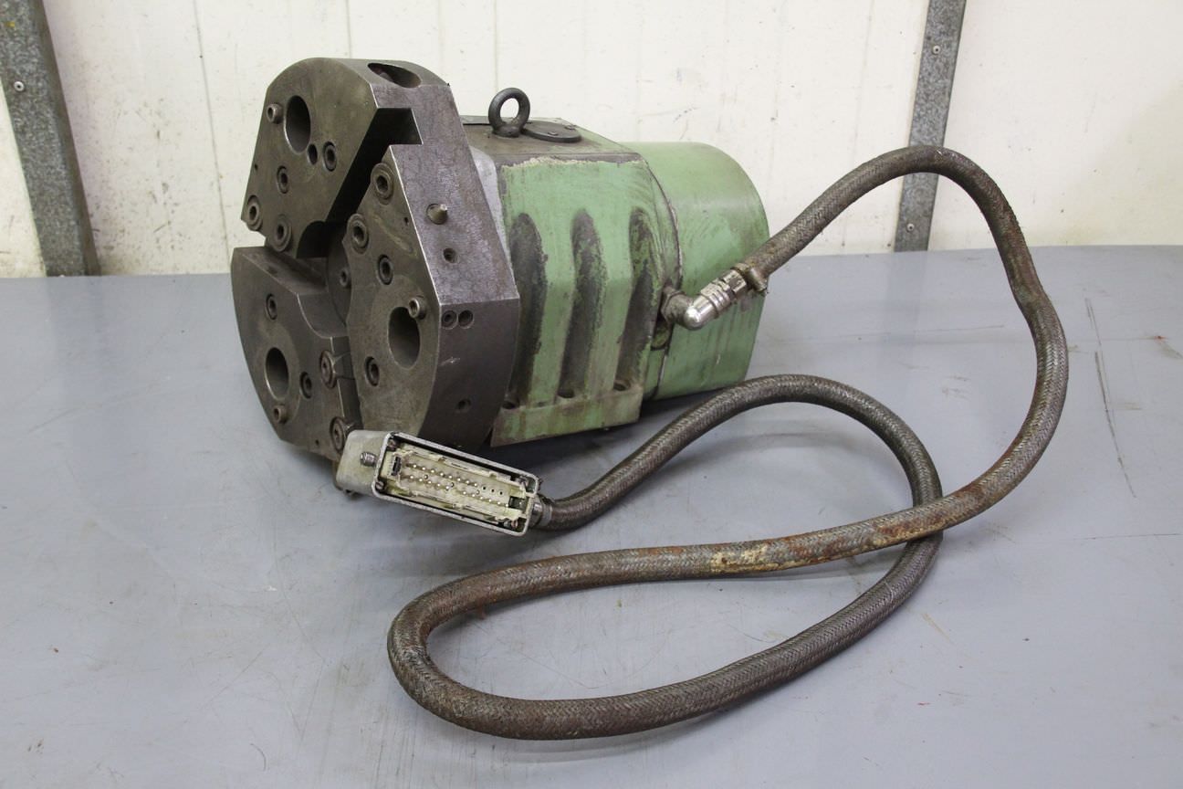 Tool changer for lathe, tool disk turret, top support, top slide, dovetail guide -for: max. 6 tools -Changer comes from a Gildemeister CNC lathe type: NEF 560 - Tip height: 105 mm -Turning chisel holders: 25 x 25 x 100 mm -Quantity: 2 pieces available -Price per piece -Dimensions: 315/315 / H380 mm -Weight: 87 kg