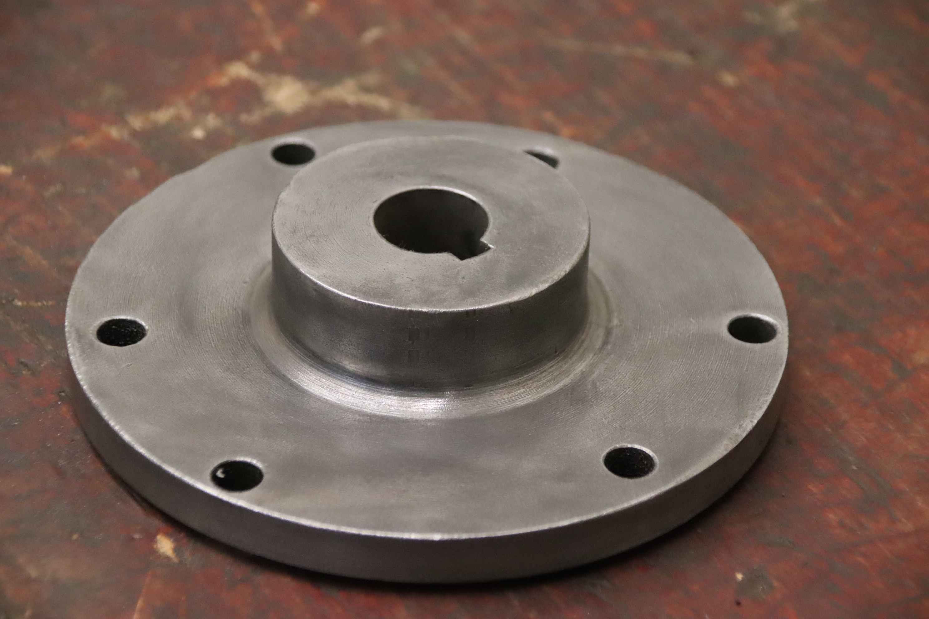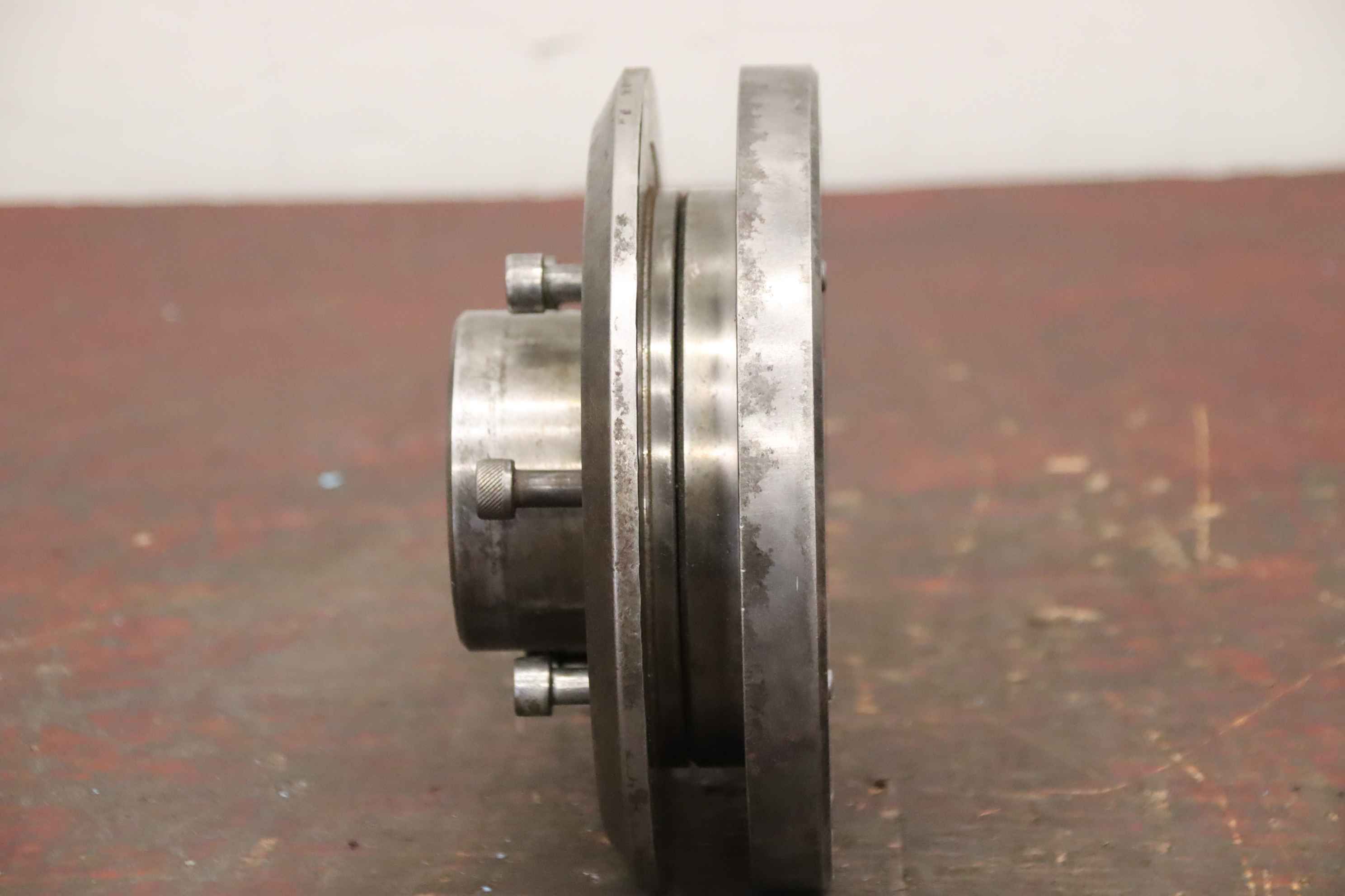 Chuck flange, flange mount, chuck flange, drive flange, intermediate flange, chuck faceplate, mounting flange -Muck flange: Mounting flange for three-jaw chucks, four-jaw chucks, faceplates -Outer diameter: 162 mm -Socket: Short cone 5, cone Ø 79 - 82 mm -Bolt circle: Ø 105 x 10 mm -Dimensions: Ø 162 x 25 mm -Weight: 2.4 kg