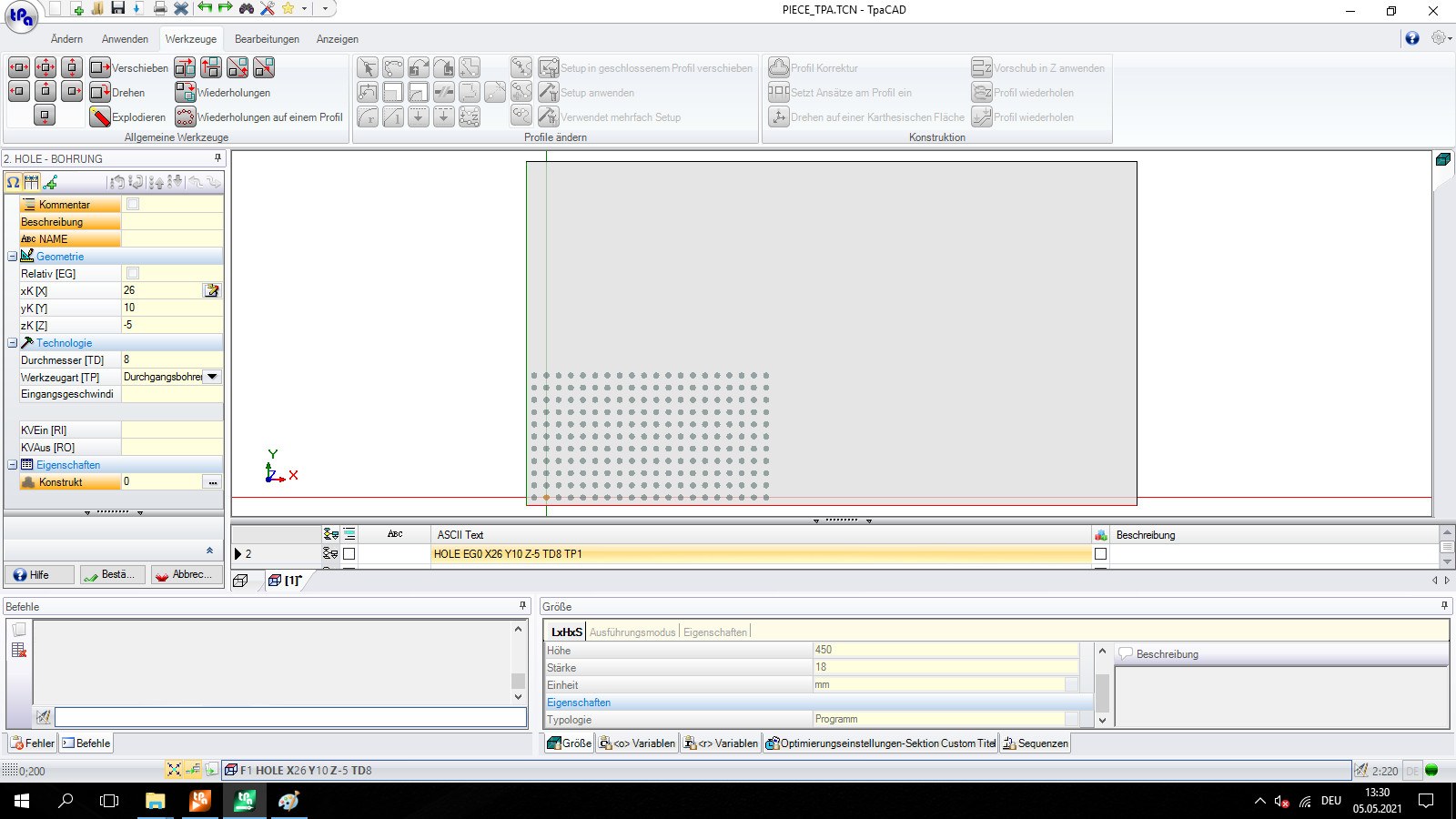 CNC punching machine Brand: Vitap Type: MICRA New machine High-Performance CNC machine for the production of acoustic panels with Micro-Perforation - Every 4 seconds the punching of 1.000 up to 2.331 holes are possible (depending on the workpiece) 3 controlled axes: - X-axis: drive via 2 motors and planetary reduction gear, guidance via pinion and rack - Y-axis: drive via 1 motor and planetary reduction gear, guidance via pinion and rack - Z-axis: drive via central hydraulical unit Easy handling with TPA control - Virtual display of programmed punching holes in the CAD environment - Optimization software for the working process - LCD TFT Monitor 20 - USB port - Basic Version CAD TPA - Macro programming Processing head - 5mm grid in X- and Y-direction - Punch depth: 3mm - Changable punching tools The processing head can optionally be customized ...