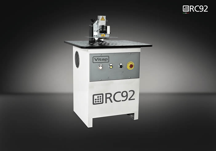 Corner rounding machine Make: VITAP Type: ROUNDER New machine Technical datas: - For corner rounder and straight corners - Standard cutters 15° R2 mm or R3 mm; - Foot pedal to start the cycle; - Movable reference with mechanical digital readout; - Complete protection with safety microswitch; - CE standards Options: CUTTER R1 MM CUTTER R2 MM CUTTER R3 MM