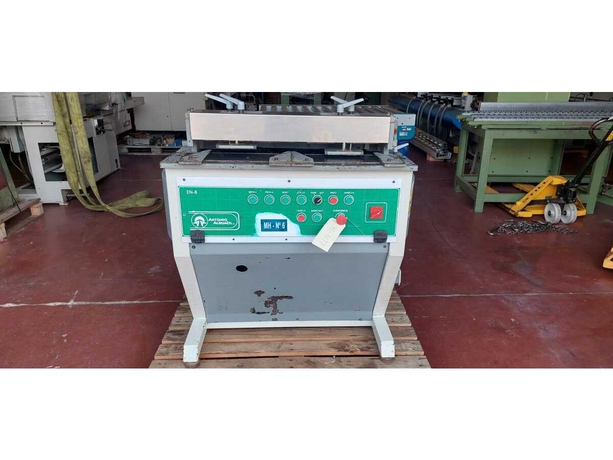 - Serial number 10474. - Maximum installed power 9 KW. - Maximum workpiece length approx. 2400 mm. - Maximum workpiece width approx. 330 mm. - Table for holding the templates. - 6 pneumatic clamping grippers. - 2 milling groups (right-left) with 5.50 KW motors. - Protective fences are included. - Operating conditions of this machine: unchecked. - This item is delivered loaded by truck. The costs of dismantling and loading are those that are specified as additional costs. Auction-ID: A7-44536-56