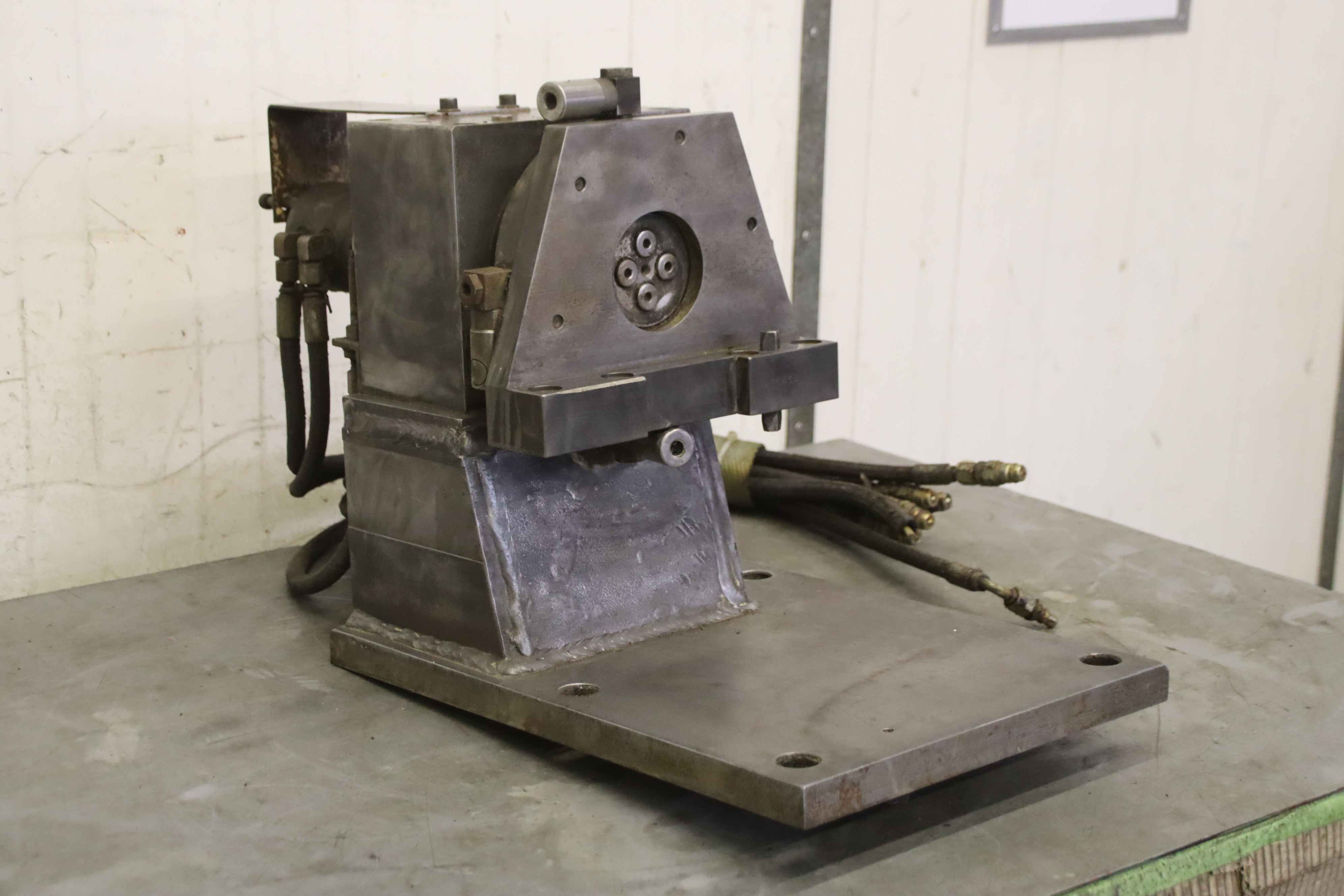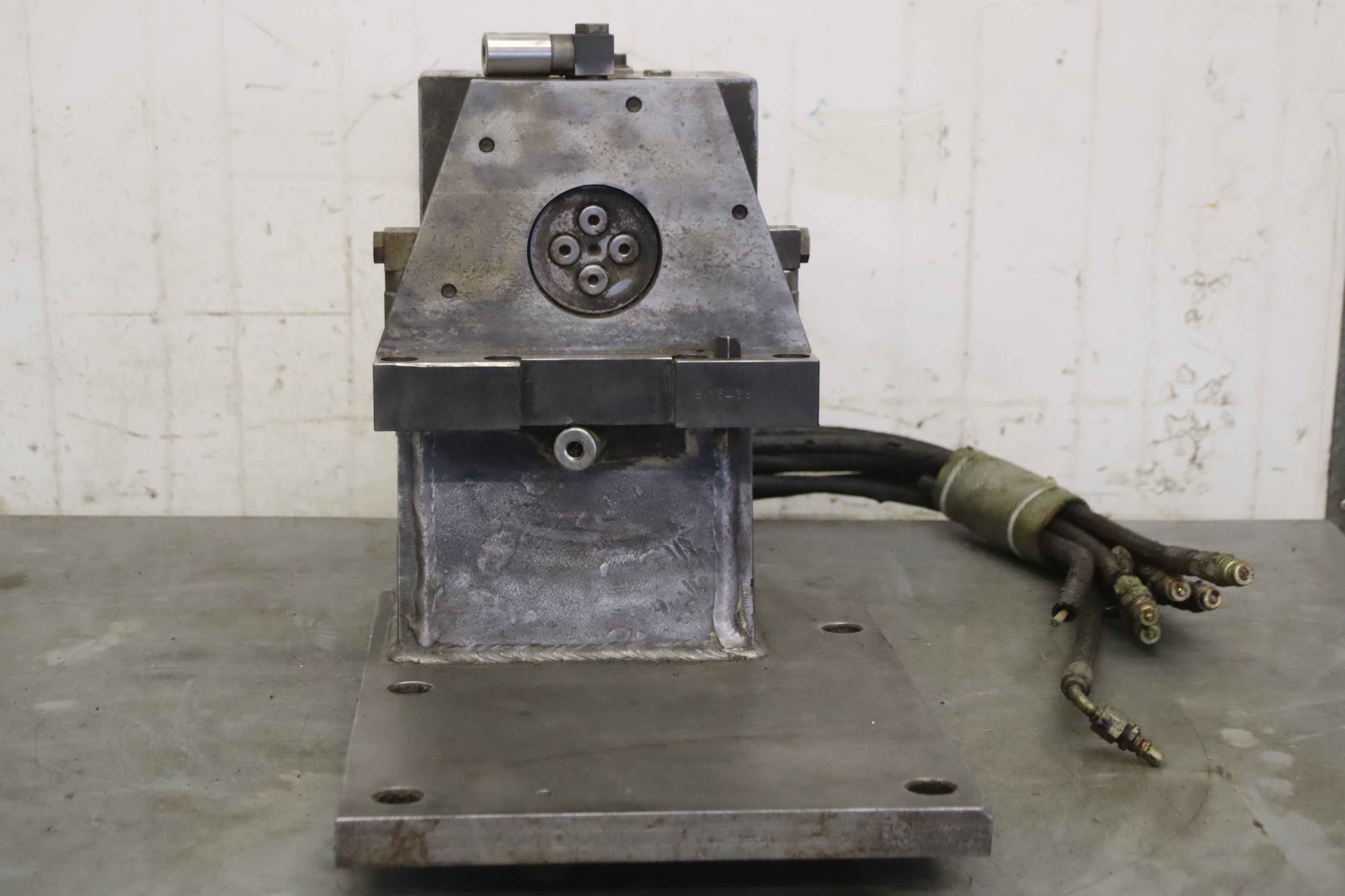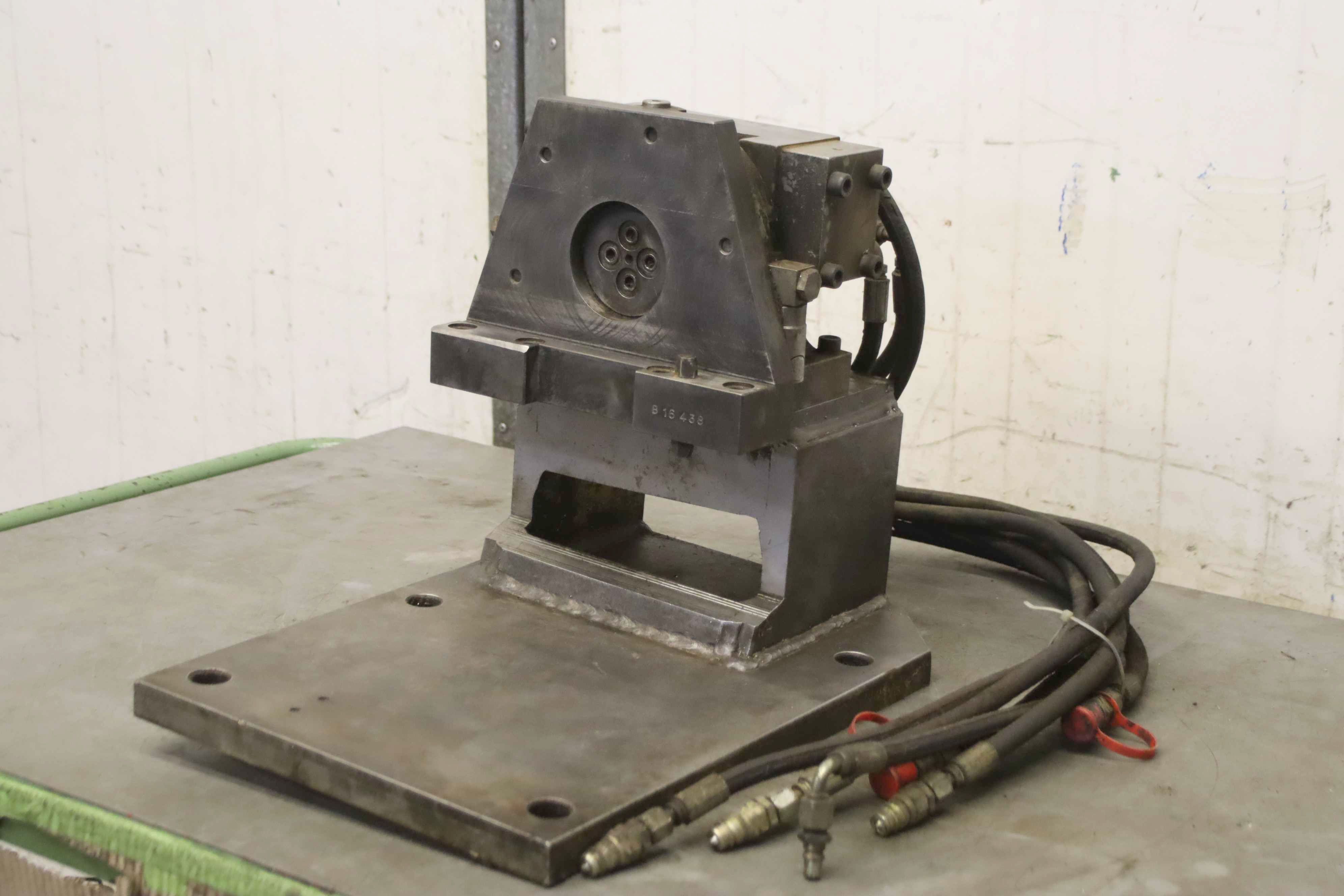Reversible clamp, 4th axis, rotary table, rotary dividing table, controlled rotary table, dividing apparatus, dividing head, rotary indexing table Hydraulic rotary coupling -Manufacturer: Romheld, hydraulic reversible clamp with rotary coupling type 9284-826 908 -Number: 2x clamping unit available -Price per piece -Dimensions: 550/335/H400 mm -Weight: 90 kg/pc.