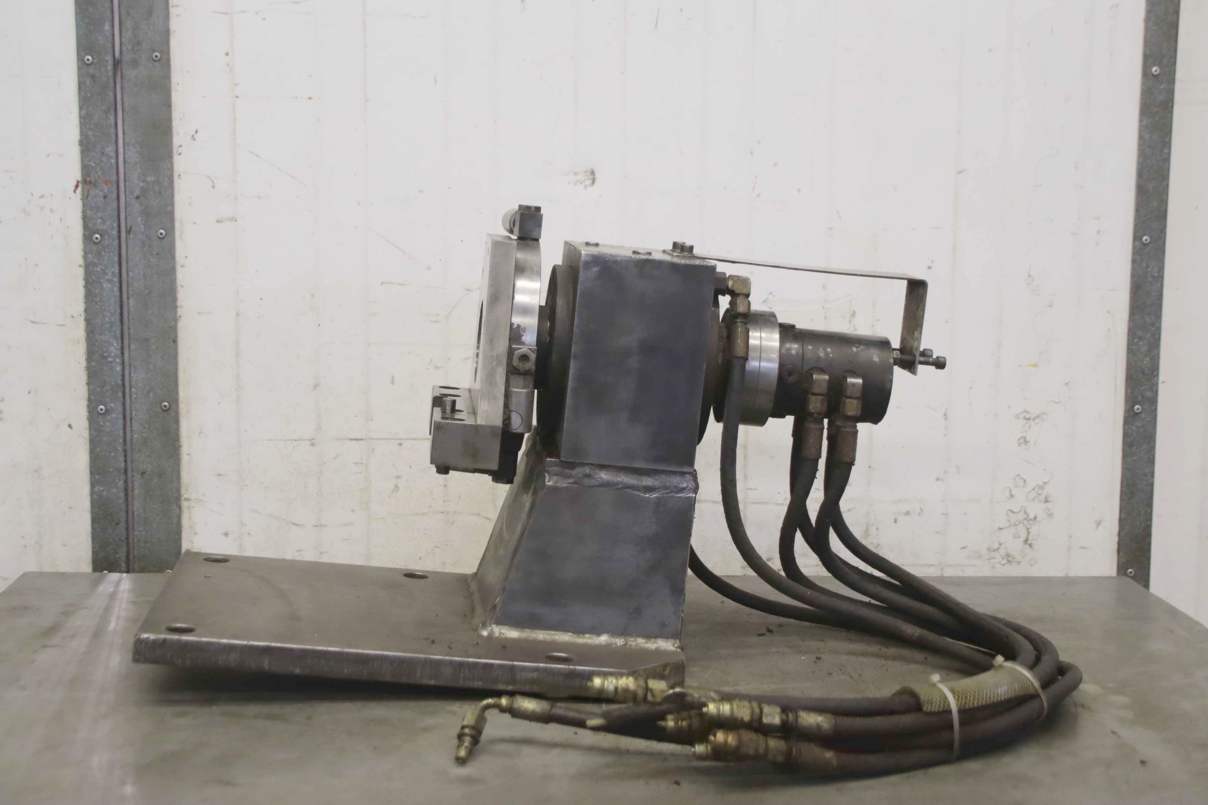 Reversible clamp, 4th axis, rotary table, rotary dividing table, controlled rotary table, dividing apparatus, dividing head, rotary indexing table Hydraulic rotary coupling -Manufacturer: Romheld, hydraulic reversible clamp with rotary coupling type 9284-003 711 -Number: 2x clamping unit available -Price per piece -Dimensions: 700/335/H430 mm -Weight: 113 kg/pc.