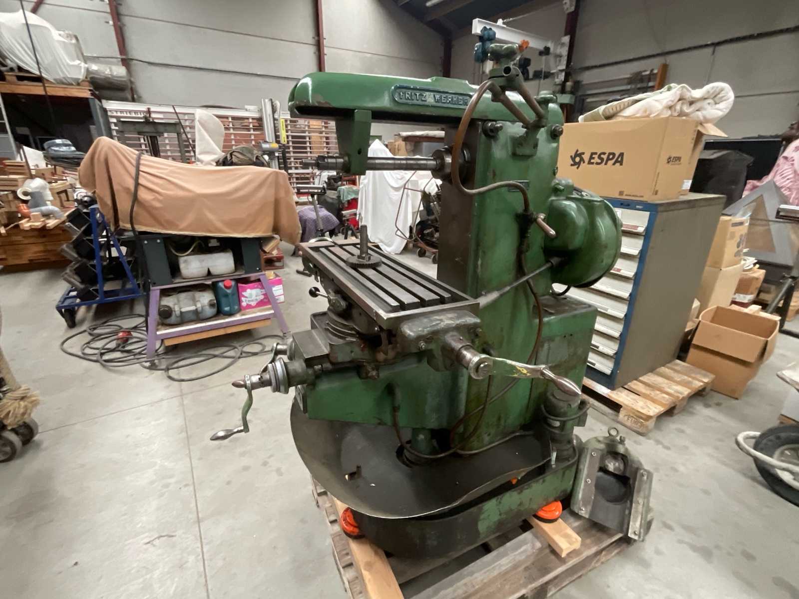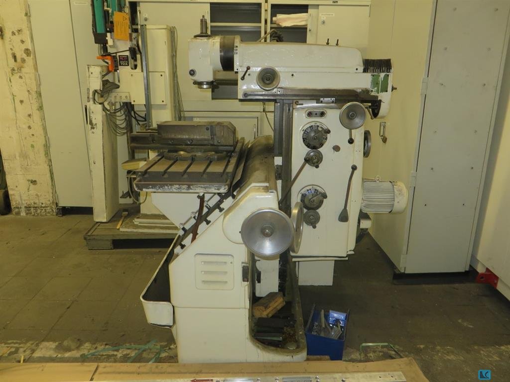 Universal horizontal milling machine – FRITZ WERNER German-made machine tool renowned for its robustness. Universal horizontal milling machine ideal for surfacing, grooving and tooling work. Heavy cast iron construction for excellent stability. Features: Brand: Fritz Werner Type: Universal horizontal milling machine 3-axis cross-table with rotation Horizontal spindle with cutter holder Prismatic slides Integrated mechanical feed box (gears visible in photo) Siemens motor with 400–500 V power supply Manual handwheel controls Disassembled side cover supplied with the machine Complete machine with levers, handwheels and guards Estimated dimensions: Table: approx. 700 × 250 mm Estimated weight: 900 – 1200 kg Status: Antique but functional machine, ideal for mechanical workshop, restoration, or machine tool collector. Wear consistent with age. Auction-ID: A3-43497-33380