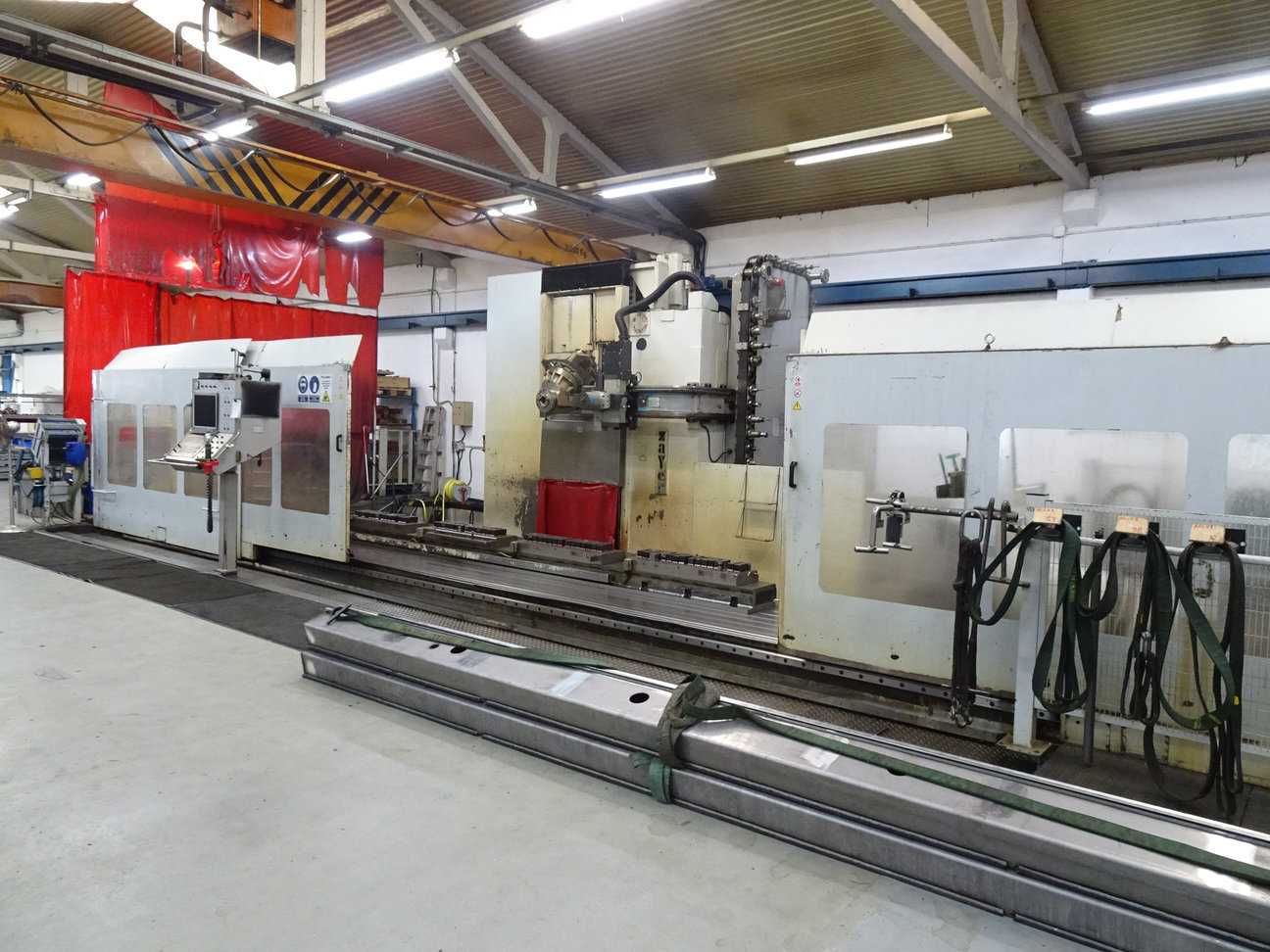 Zayer 30 KMU 10000 AR/E Moving Column CNC Milling Machine Moving column CNC milling machine with Siemens control, 9700 x 1200 mm table with magnetic clamping and complete body with full protection. Axis travel: - X: 8400 mm longitudinal - Y: 1260 mm transverse - Z: 1511 mm vertical Spindle: ISO 50 taper, 27 kW motor, maximum 3500 RPM. The machine is in daily use at our plant in Ametlla del Vallès and receives annual authorised maintenance. In 2023, spindle and support were replaced (invoice available, approx. €40,000). In good working order. Terms of sale: Disassembly, packing, handling and loading into a truck are at the buyer's expense. The machine has technical documentation, it is sold without tools/tools or spare parts. Withdrawal: Notice must be given with a minimum of 10 days or a week to coordinate the load. Means of loading provided by the seller: pallet trucks, bull an ...