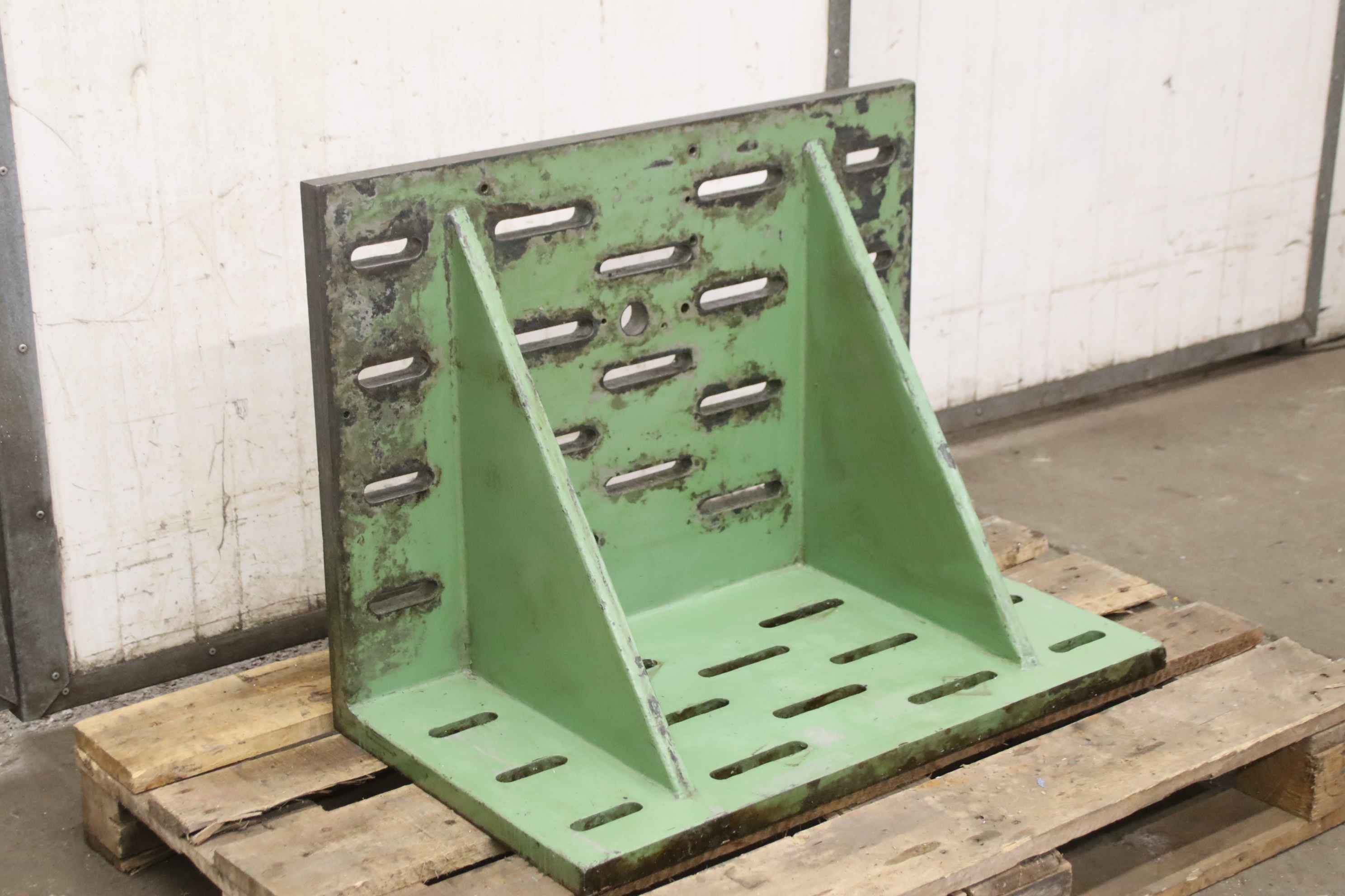 Clamping table, clamping angle, T-slot table, rotary table, milling machine table-Clamping angle: for workpiece clamping-Table surface: 800 x 445 mm, height 595 mm-Wall thickness: 30 mm-Grooves: 120 x 21 mm / 80 x 21 mm-Dimensions: 800/445/H595 mm-Weight: 197 kg