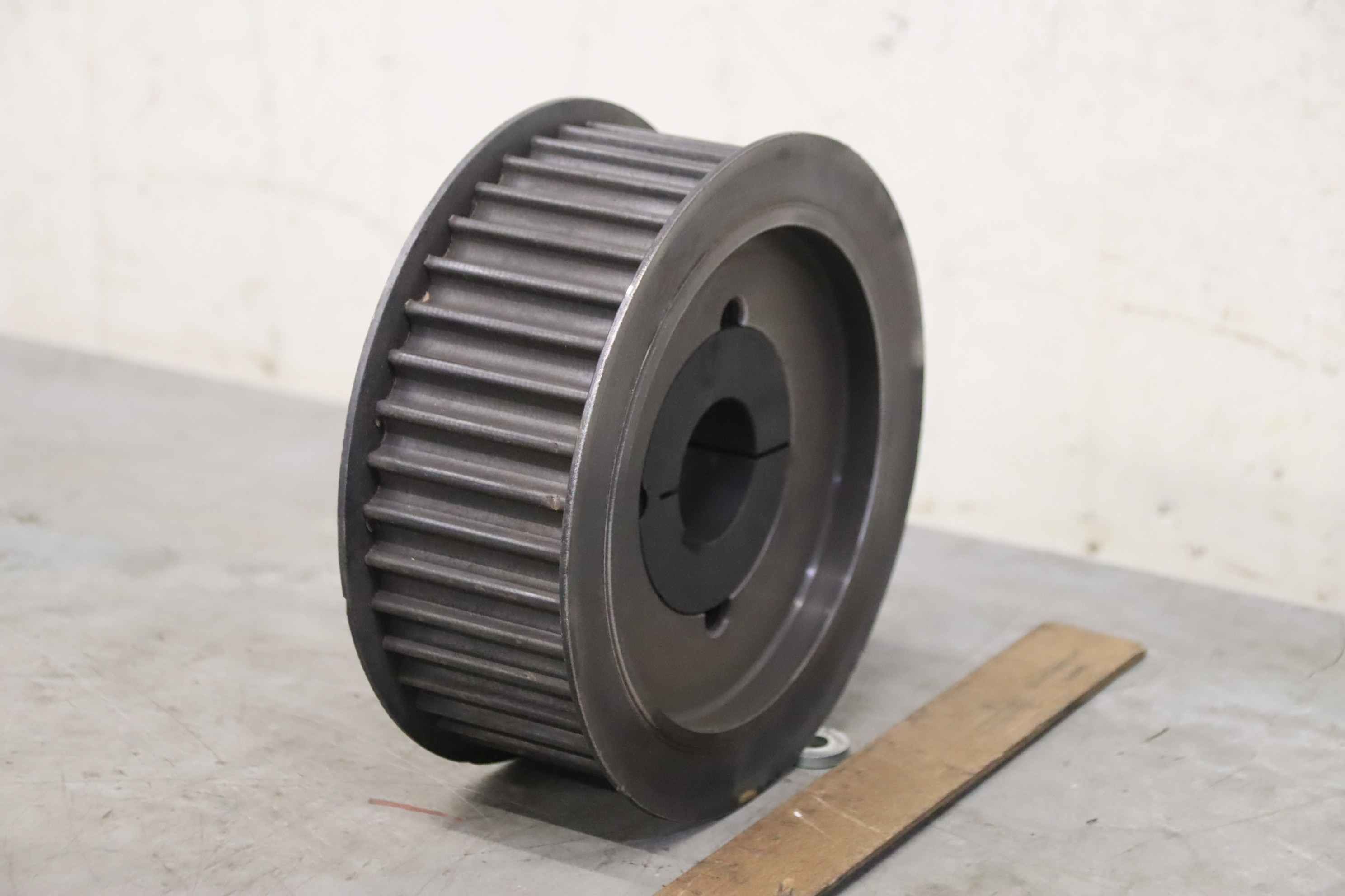 Flat belt pulley, toothed pulley, multi-belt pulley, timing belt pulley -Timing belt pulley: Ø 192 mm -Type: 32-8M-30 -Material: Steel -Number of teeth: 44 teeth / Belt width: 30 mm -Mount: Taper clamping bushing optibelt 1615-30 Ø 30 x 38 mm -Quantity: 2x timing belt pulleys available -Price: per piece -Dimensions: Ø 87 x 38 mm -Weight: 1.1 kg/pc.