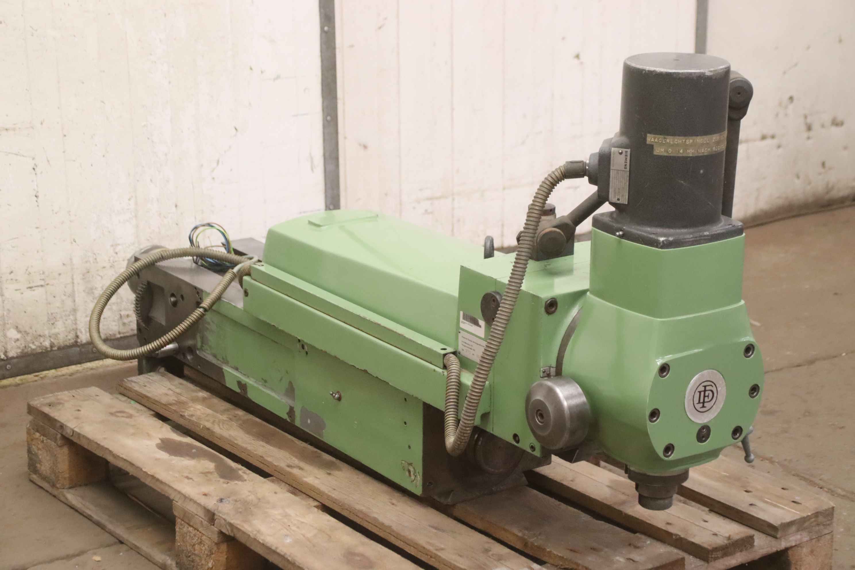 Universal milling head, milling chuck, milling extension, angle milling head -Manufacturer: Deckel, milling head from milling machine FP4L -Mounting: SK40 -Milling head: swiveling -Tool clamp: electric motor -Individual components: see photos -Transport dimensions: 1690/360/H745 mm -Weight: 548 kg