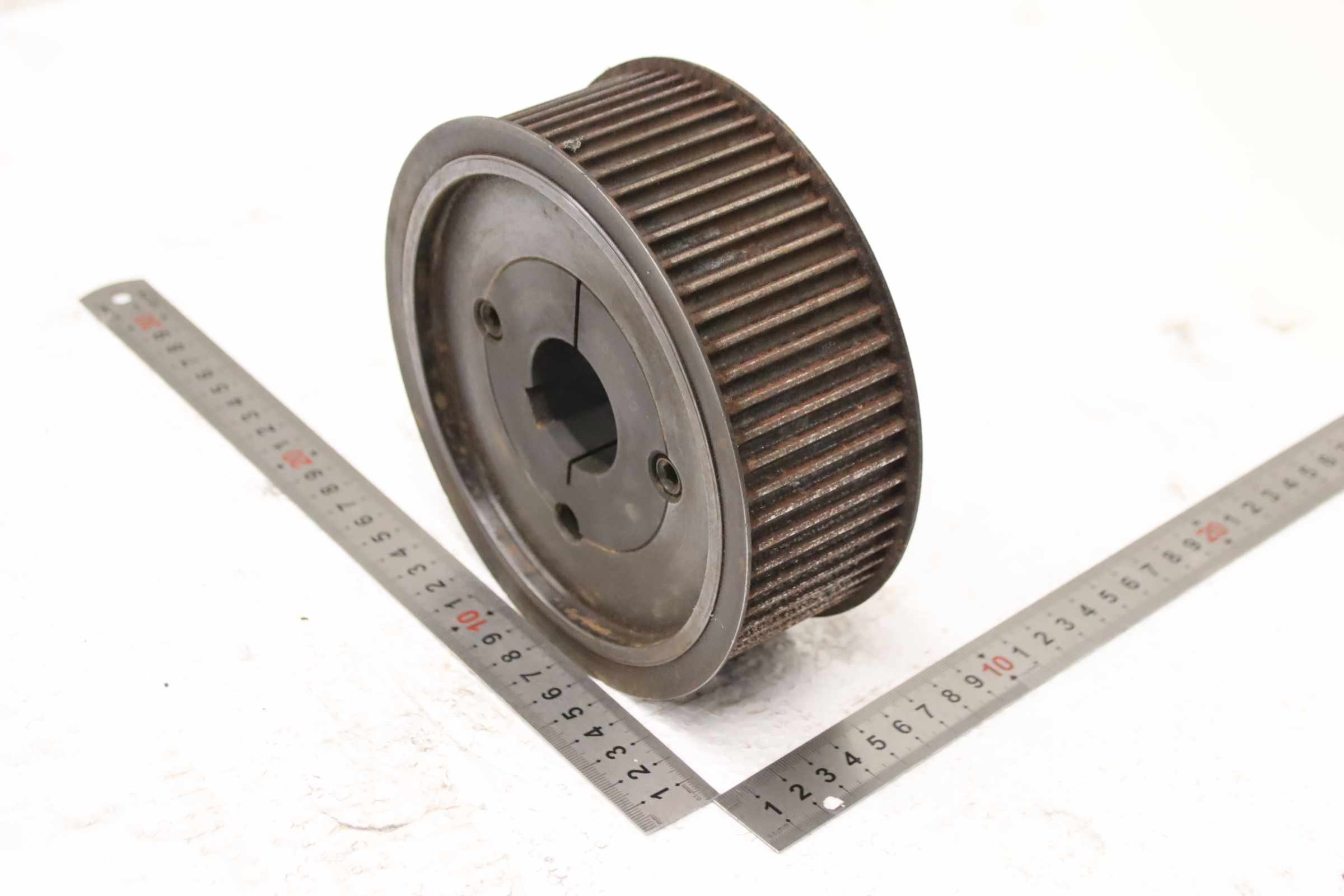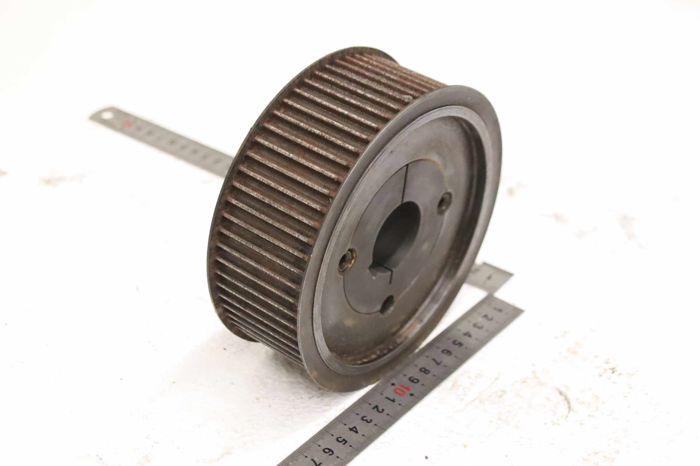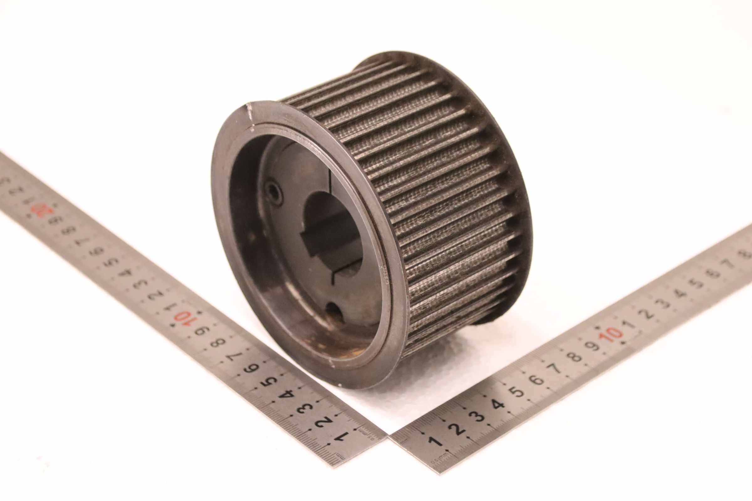 Flat belt pulley, toothed pulley, multi-belt pulley, timing belt pulley -Timing belt pulley: Ø 192 mm -Type: D TB 64-8M-50 -Material: Steel -Number of teeth: 64 teeth / Belt width: 50 mm -Mount: Optibelt 2517-40 taper clamping bushing Ø 40 x 44.5 mm -Quantity: 2x timing belt pulleys available -Price: per piece -Dimensions: Ø 168 x 60 mm -Weight: 6.8 kg/pc.