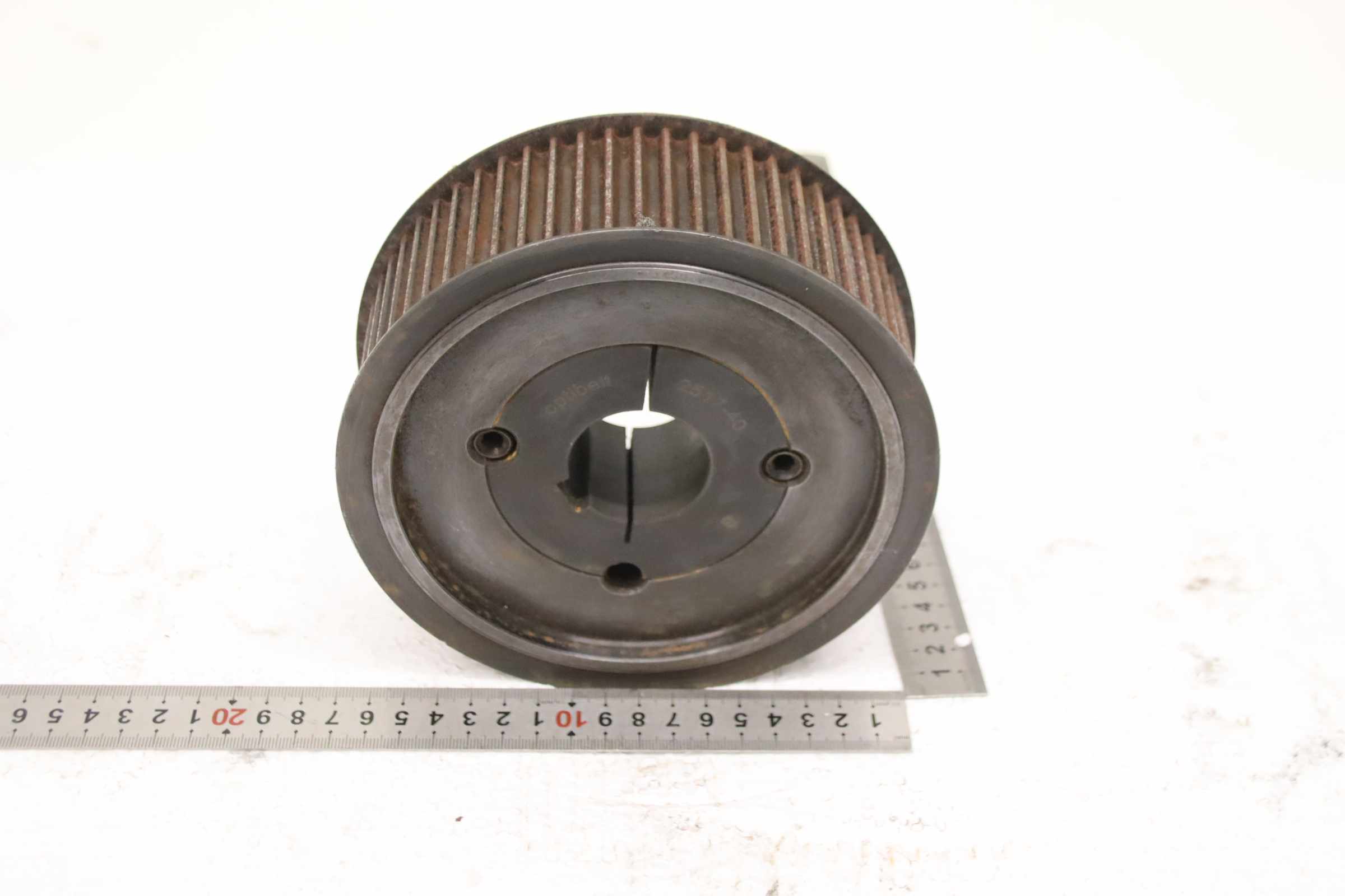Flat pulley, toothed pulley, multi-belt pulley, timing belt pulley-Timing belt pulley: Ø 190 mm-Type: 40-14M-55-Pitch: 14 mm / strap width approx. 55 mm-Receptacle: Taper clamping bushing: Tecnamic 2517-40 Ø 40 x 45 mm-Dimensions: Ø 190 x 70 mm-Weight: 8.7 kg