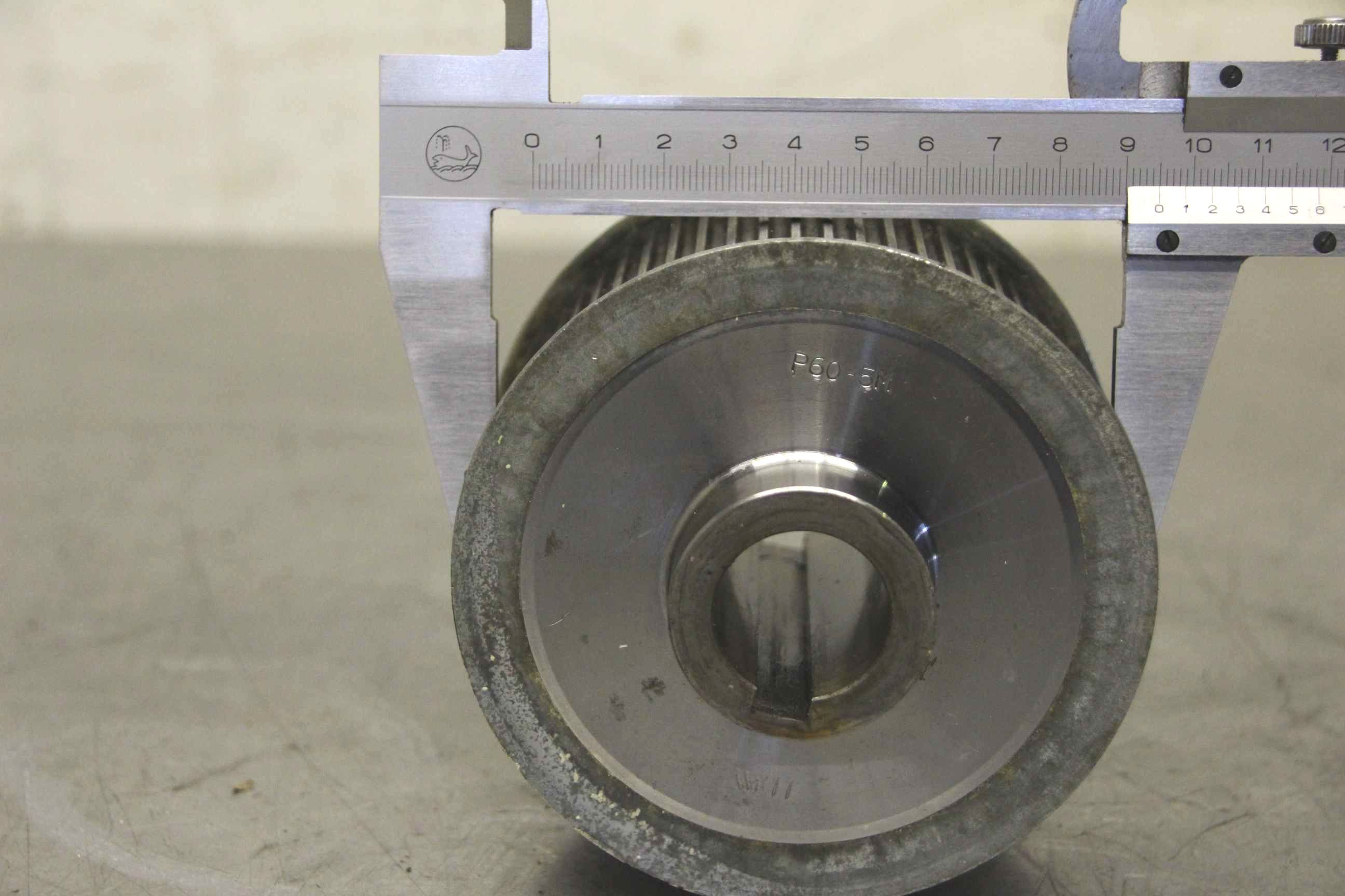 Flat belt pulley, toothed pulley, multi-belt pulley, Toothed Pulley-Toothed disk: from a Kern CD 480 lathe-Type: P60-5M-Mount: hollow shaft Ø 25 mm-Dimensions: Ø 103 x 77 mm-Weight: 2.9 kg