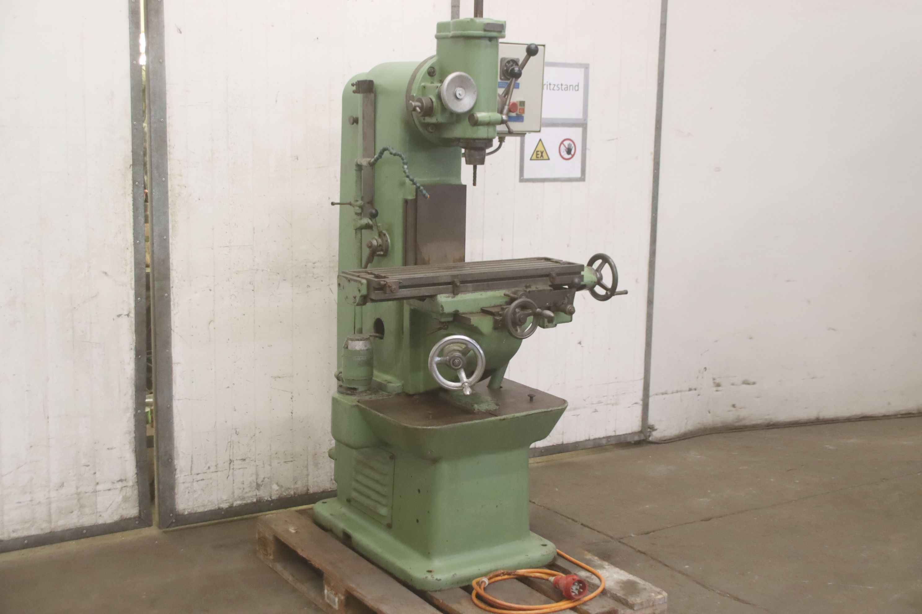 Model making milling machine, universal model milling machine, milling machine, universal milling machine, tool milling machine, drilling and milling machine, model making milling machine, vertical milling machine-Manufacturer: Steinel, vertical milling machine type SV 4-Clamping table: 740 x 200 mm-Cross table: 620 x 130 mm-Travel: X/Y/Z 340/100/300 mm-Spindle holder: MK2-Speed: 112 - 2240 rpm right/left rotation-Feed: 0.10 - 0.71 mm/min-Quill stroke: 100 mm-Coolant system-Dimensions: 1000/950/H1830 mm-Weight: 650 kg