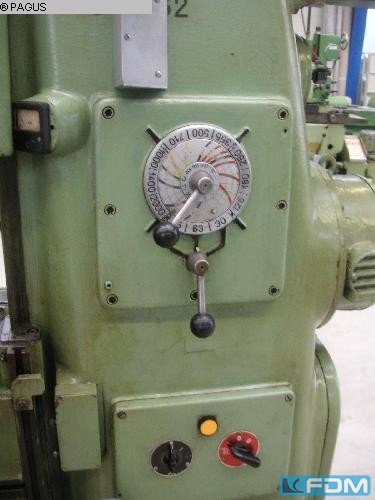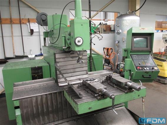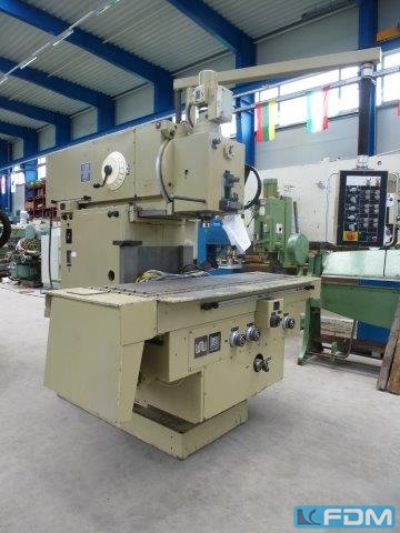 x-travel:600 mmy-travel:500 mmz-travel:400 mmspindle diameter:90 mmspindle turning speed range:45 - 2000 U/mintable length:1250 mmtable width:200 mmgroove width:14 mmtable rotating:45 °total power requirement:4,2 kWweight of the machine ca.:2000 kgdimensions of the machine ca.:2000 x 1800 x 1550 mmYear:ca.1957 Documents:vorhanden