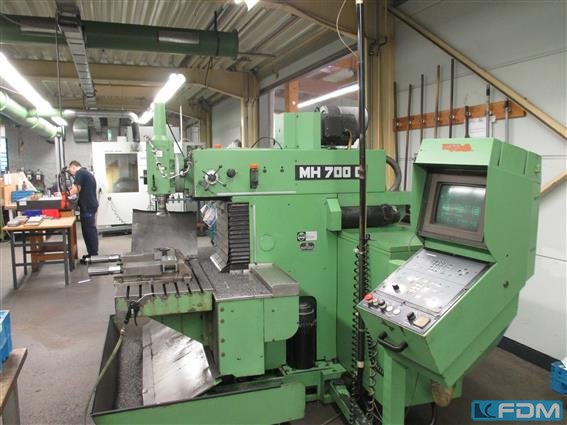 x-travel:700 mmy-travel:450 mmz-travel:500 mmtotal power requirement:23,4 kWweight of the machine ca.:3100 kgdimensions of the machine ca.:3200 x 4000 x 2500 mmtool taper:ISO 40 feeds:0,2 - 0,6 - 0,12 mm/Uspindle speeds::20 - 3150 , direkt programmierbar /minfeed range:1 - 3000, in B=0,01 - 3 U/minrapid traverse in x-y-z axis:6m/ min, B = 7,6 U/minwork table::NC Rundtisch(B-Achse) D=630 mm, 9T-nuten control:CNC432