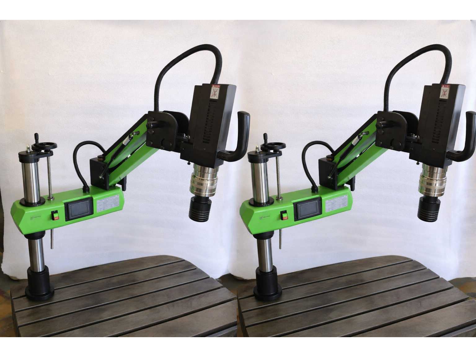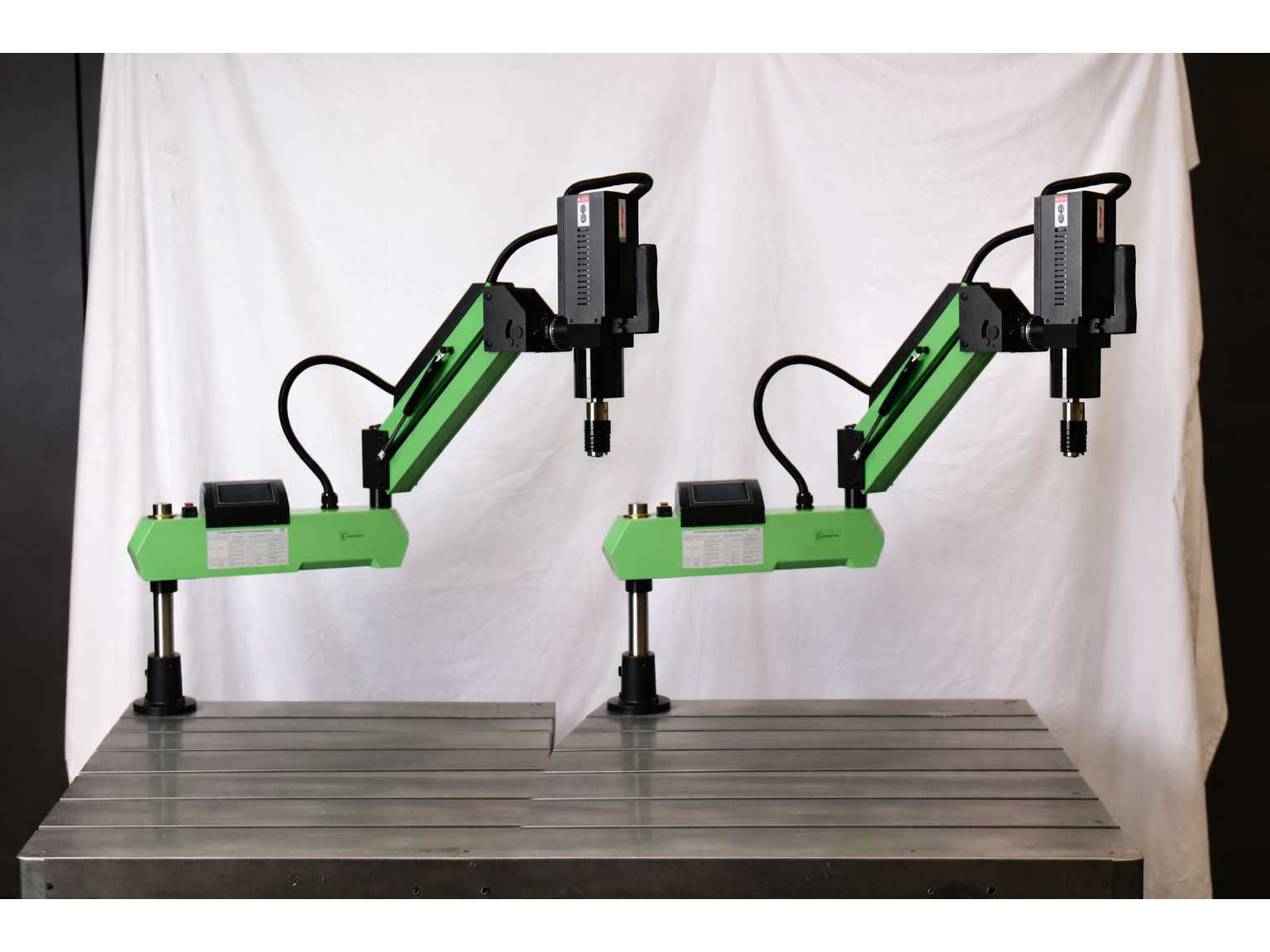 2 UNITS/SETS OF LON0004/D PACKED TOGETHER. A SINGLE LON0004/D CORRESPONDS TO: The tapping machine is servo driven, with intelligent torque protection, to overcome the traditional limitations of lathe, drilling or manual tapping. Boasting advanced mechanical design, with a variety of processes using in-mold casting, the overall stiffness is strong, durable, non-deformable. The high definition touch screen is simple and intuitive. It can perform vertical and horizontal work of complex and heavy parts, locate quickly and process accurately. Continuous speed change, manual, automatic, with three different working modes. Auto mode can effectively control the touch depth, without the operation button, automatic control by depth controller. Fast repeated positioning, tapping speed, high production efficiency. Voltage: 220V / 50HZ Power: 1200W,0-150RPM. Tap Range: DIN M6-M30 COLLET: M6-8,M10,M12 ...
