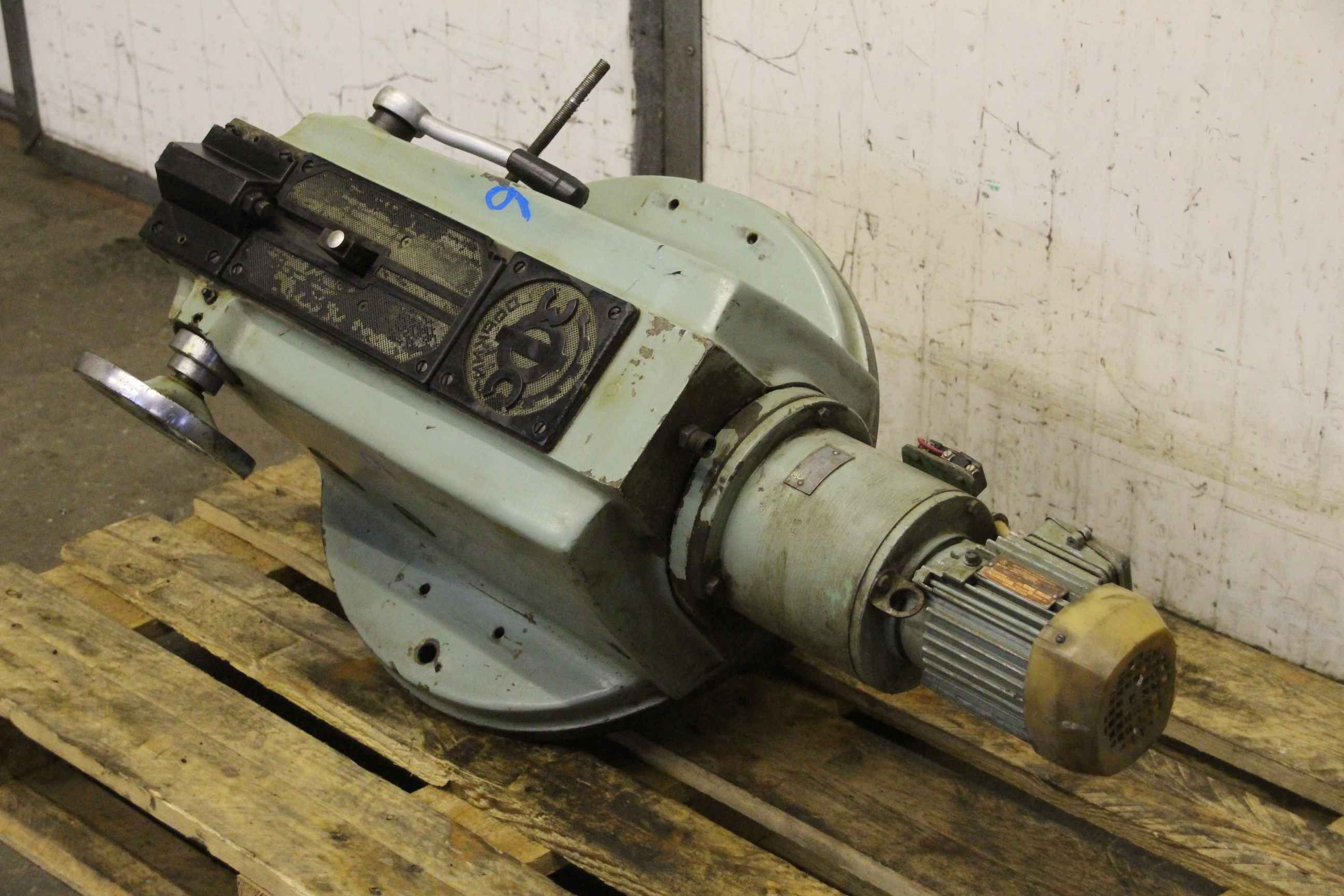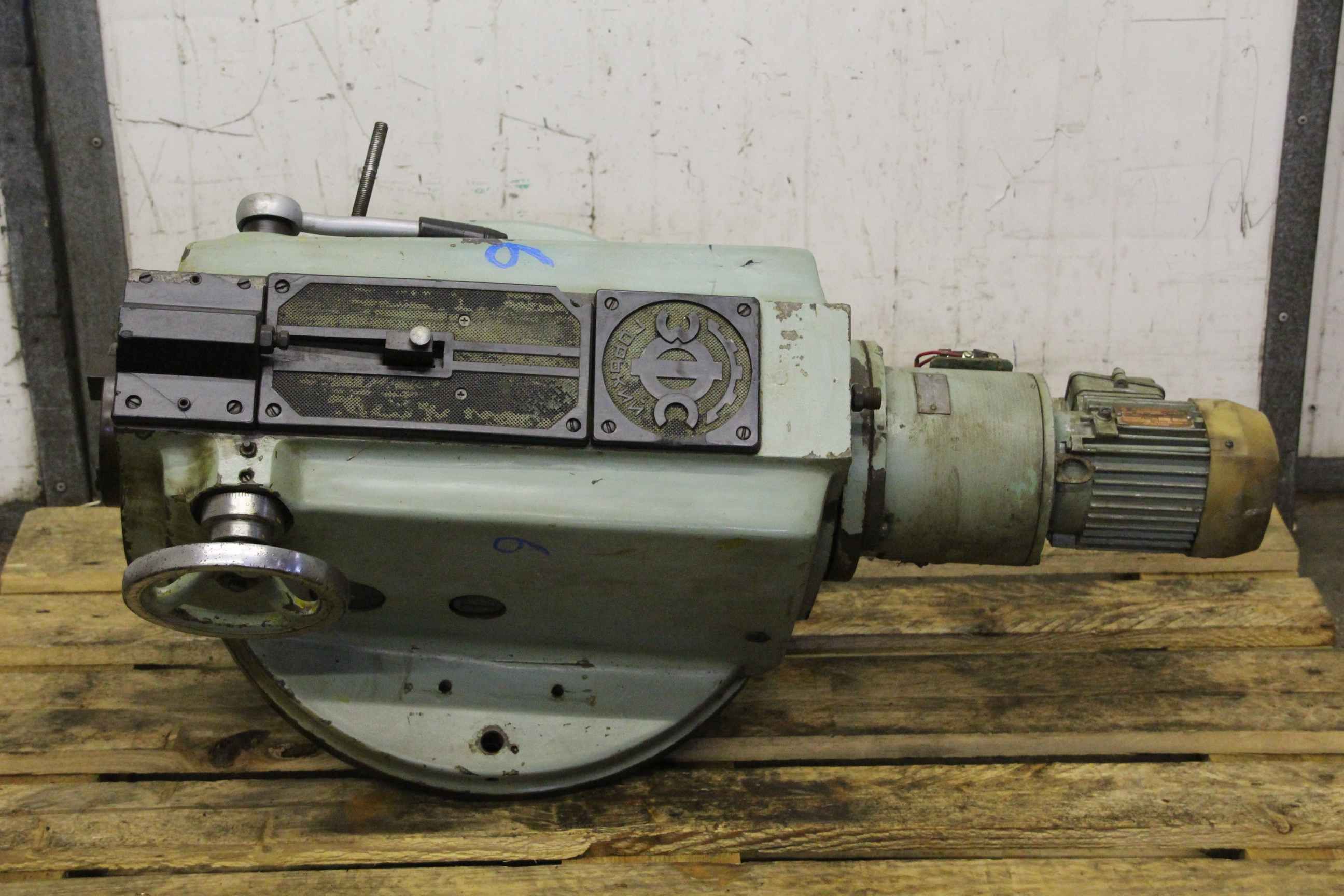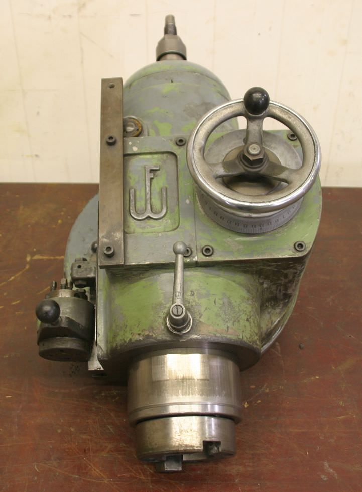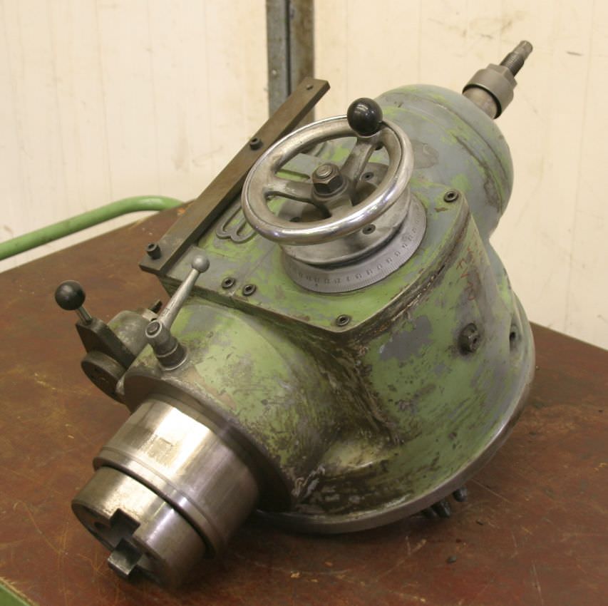 Universal milling angle head, milling angle head -Recording: SK 50 -Flange mounting outer diameter: 380 mm -Bolt circle diameter: 320 mm -Drive mounting diameter: 60 mm -swivel -Quick stroke: 65 mm -Dimensions: 450/400/H700 mm -Weight: 170 kg