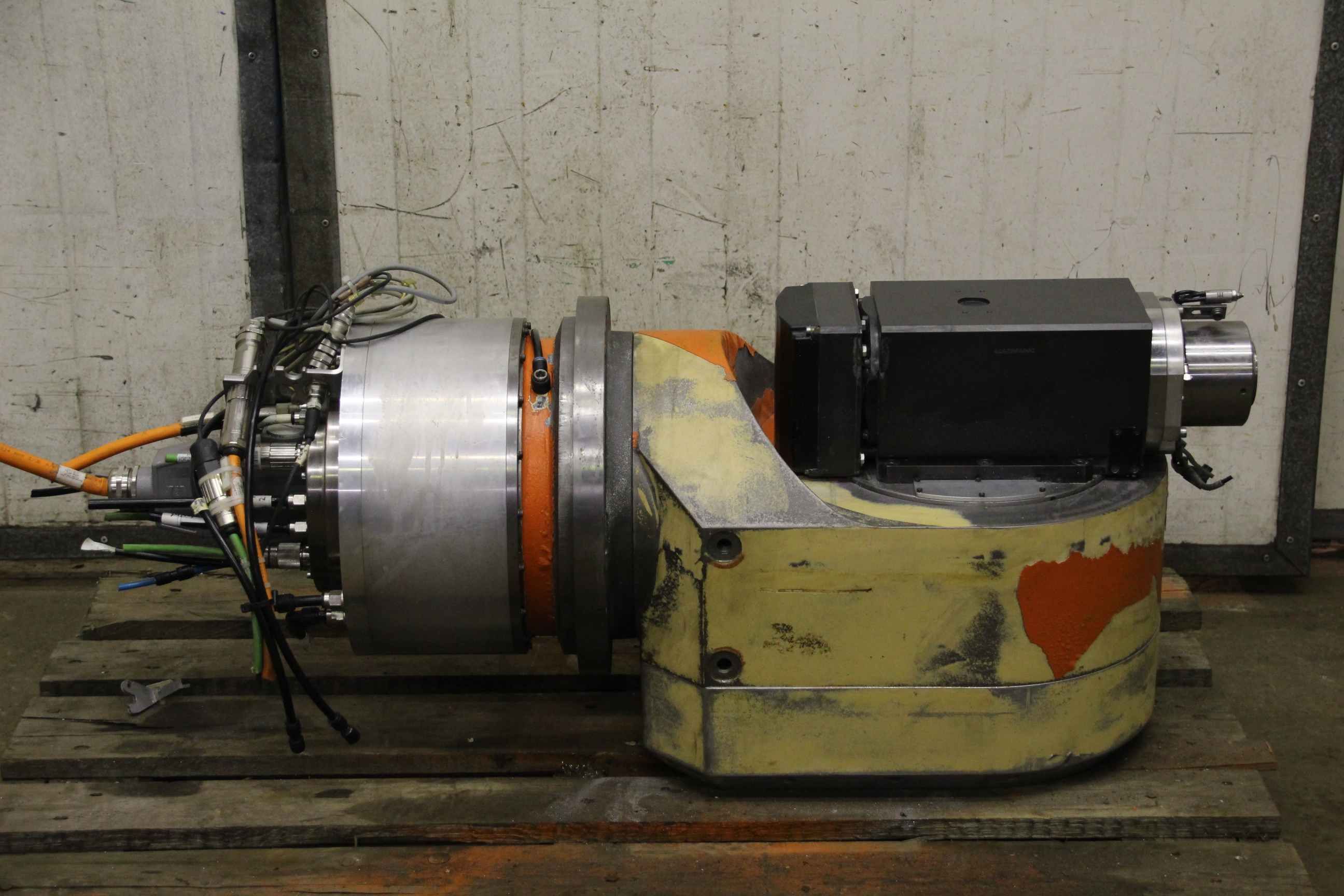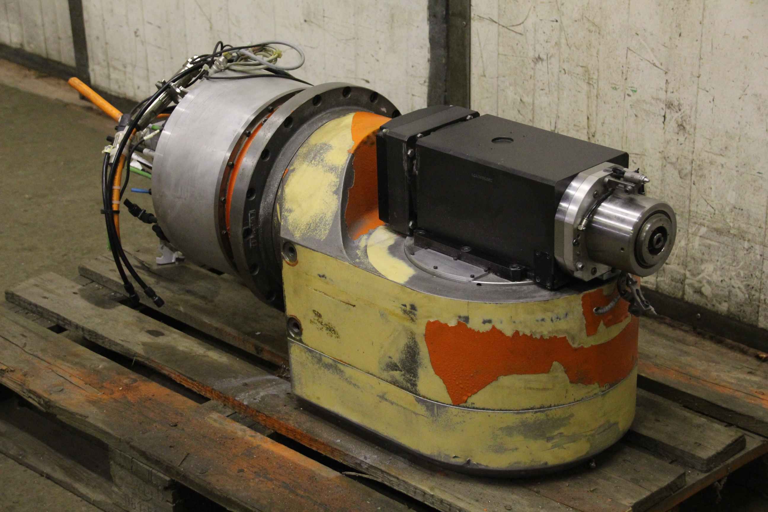 Universal milling head, milling adapter, milling extension, angle milling head, electronic spindle-Spare part comes: from a machining center BJM type ALBZ-145-Number: 1 piece angle milling head-Recording output: HSK-Milling head: completely rotatable/pivotable-Transport dimensions: 1080/380/H435 mm-Weight: 246 kg