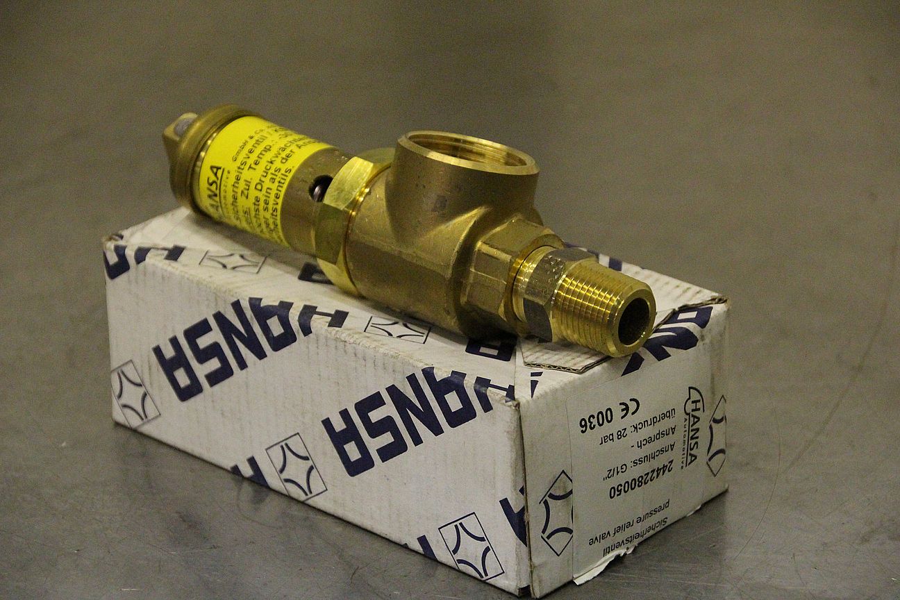 Refrigeration compressor, refrigeration unit, cooling compressor, refrigeration unit, cooling compressor, compressor, filter dryer housing, shut-off valve, ball valve, temperature switch, thermostat, expansion valve, safety valve -Manufacturer: Hansa, safety valve, unused, original packaging -Type: KSV 28 bar 2442280050 -Connection: G1/2 -Price: per piece -Number: 7 pieces -Package dimensions: 150/80/H55 mm -Weight: 0.6 kg/piece