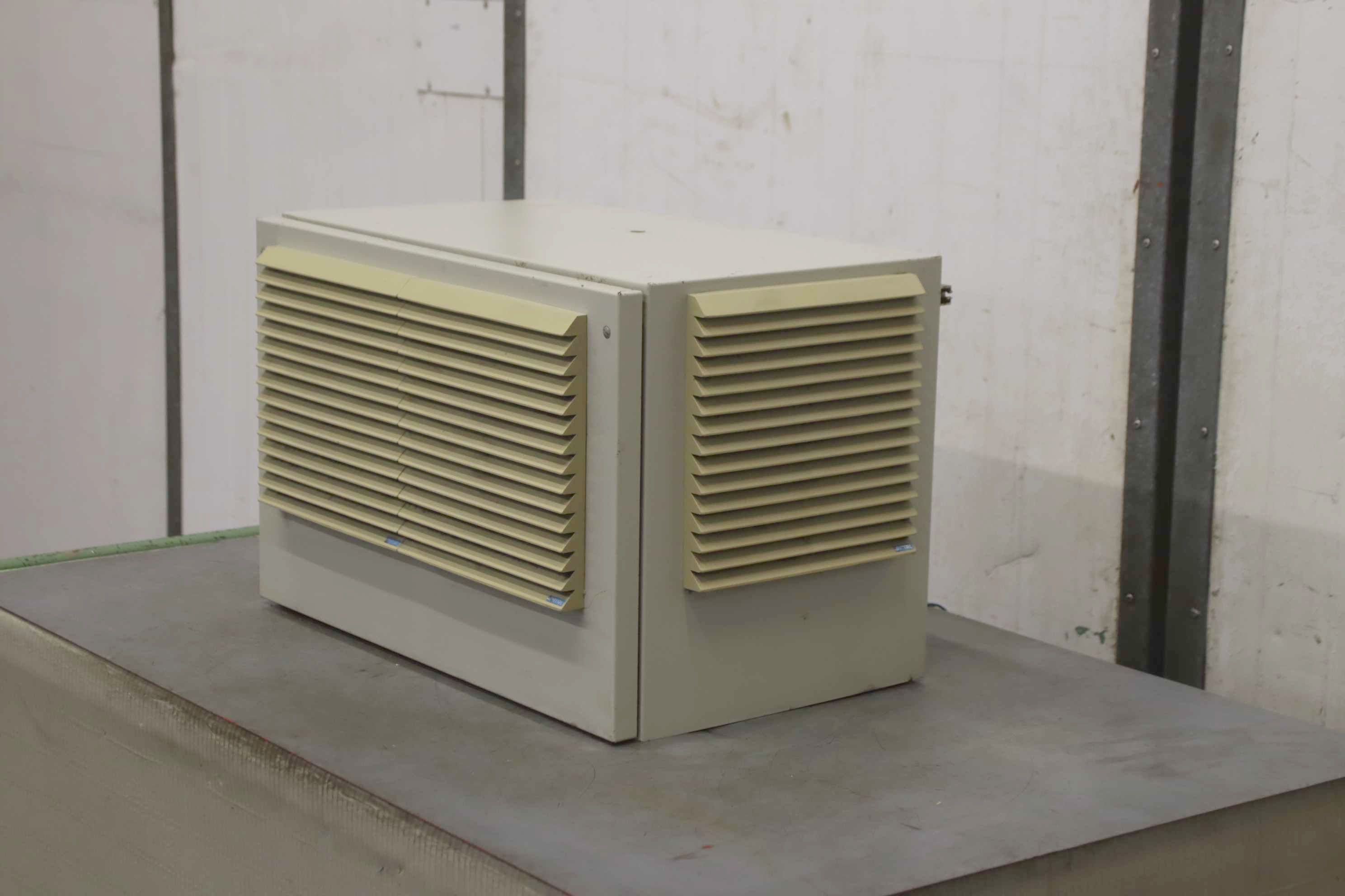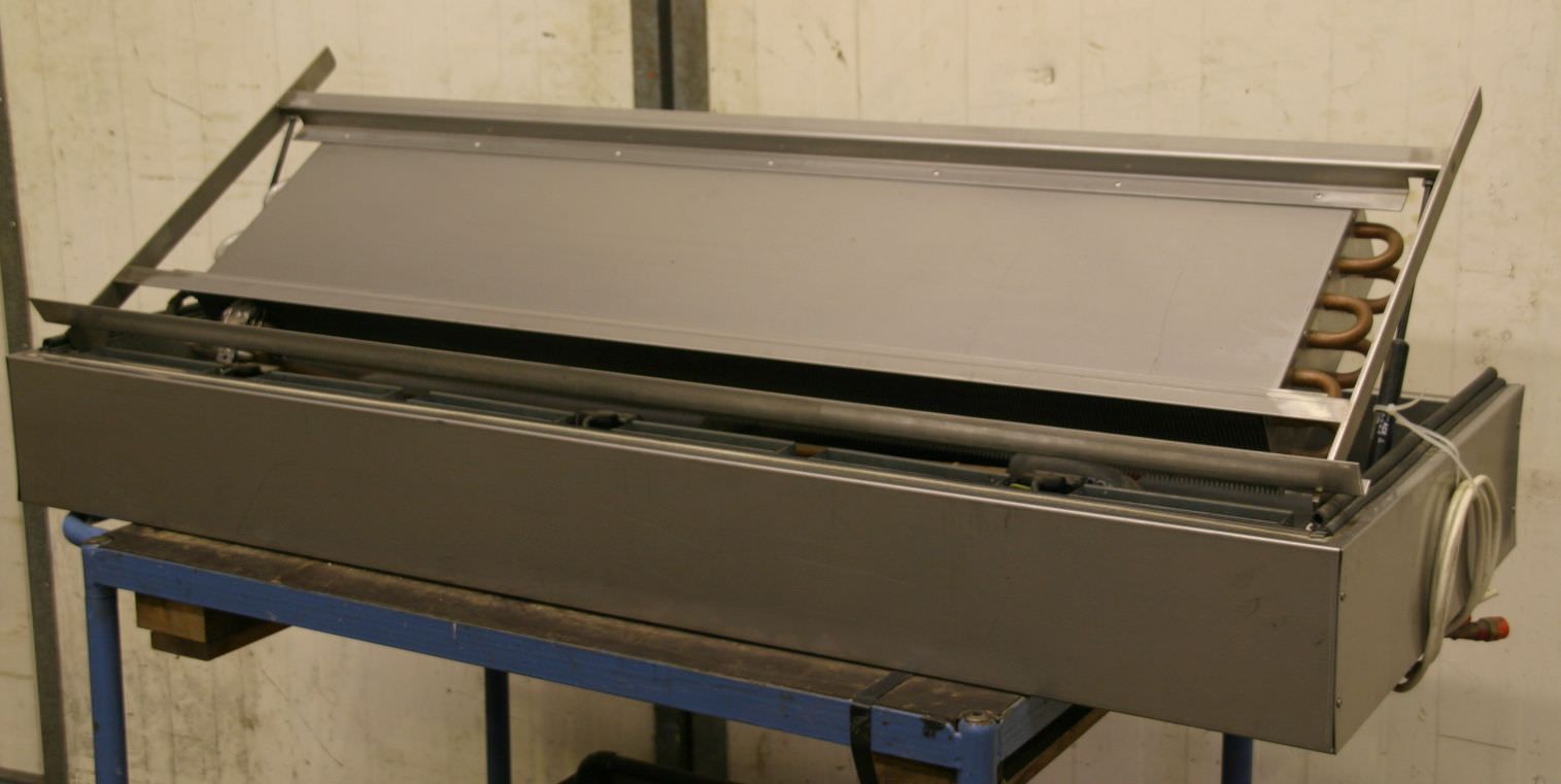 Air cooler, cold storage, refrigerated container, cold room -equipped with: 4x fans -Cooling capacity: 70 kW -Air flow rate: 39,673 m³/h -Area: 348 m² -Slat spacing: 10 mm -Fan diameter: 500 mm -Lamb spacing: 10 mm -Housing: made of stainless steel -Drip tray -Number: 2x coolers available -Price: per piece -Dimensions: 4550/1100/H940 mm -Weight: 600 kg/piece