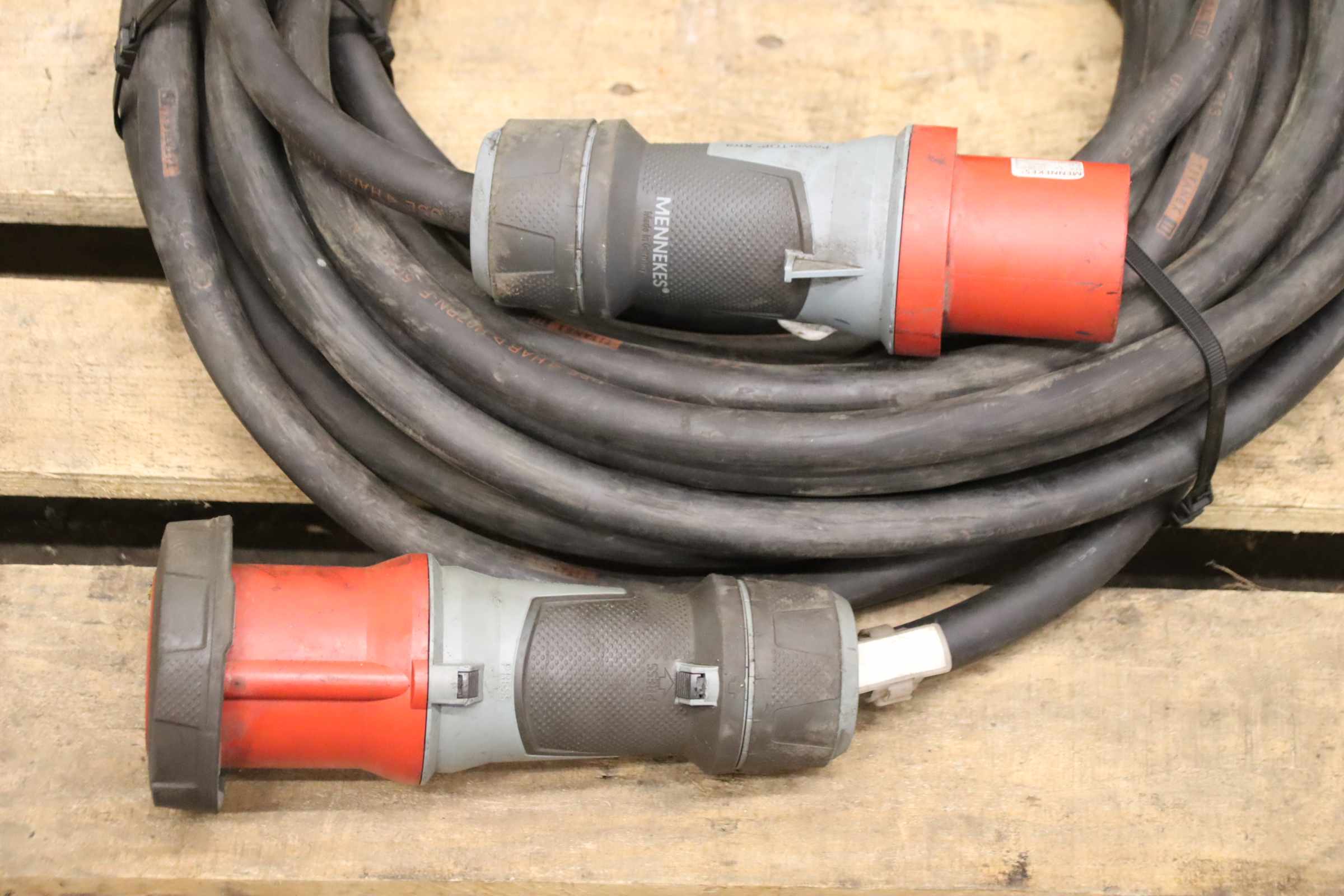Power cables, extension cables -Extension cable: Length 25 m -Plug: Mennekes 13112 CEE plug 63 A 5-pin 400 V -Transport dimensions: Ø 600 x 190 mm -Weight: 26 kg