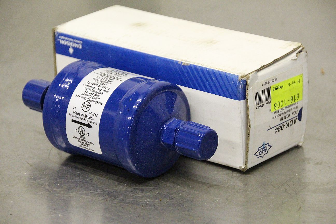 Refrigeration compressor, refrigeration machine, cooling compressor, refrigeration unit, cooling compressor, compressor, filter drier housing, shut-off valve, ball shut-off valve, temperature switch, thermostat, expansion valve, angle flange, valve flange-Manufacturer: Alco, filter drier, unused original packaging-Type: ADK-084/PCN 003610-Connection: 12 mm flange-Dimensions package: 175/70/H70 mm-Weight: 0.6 kg