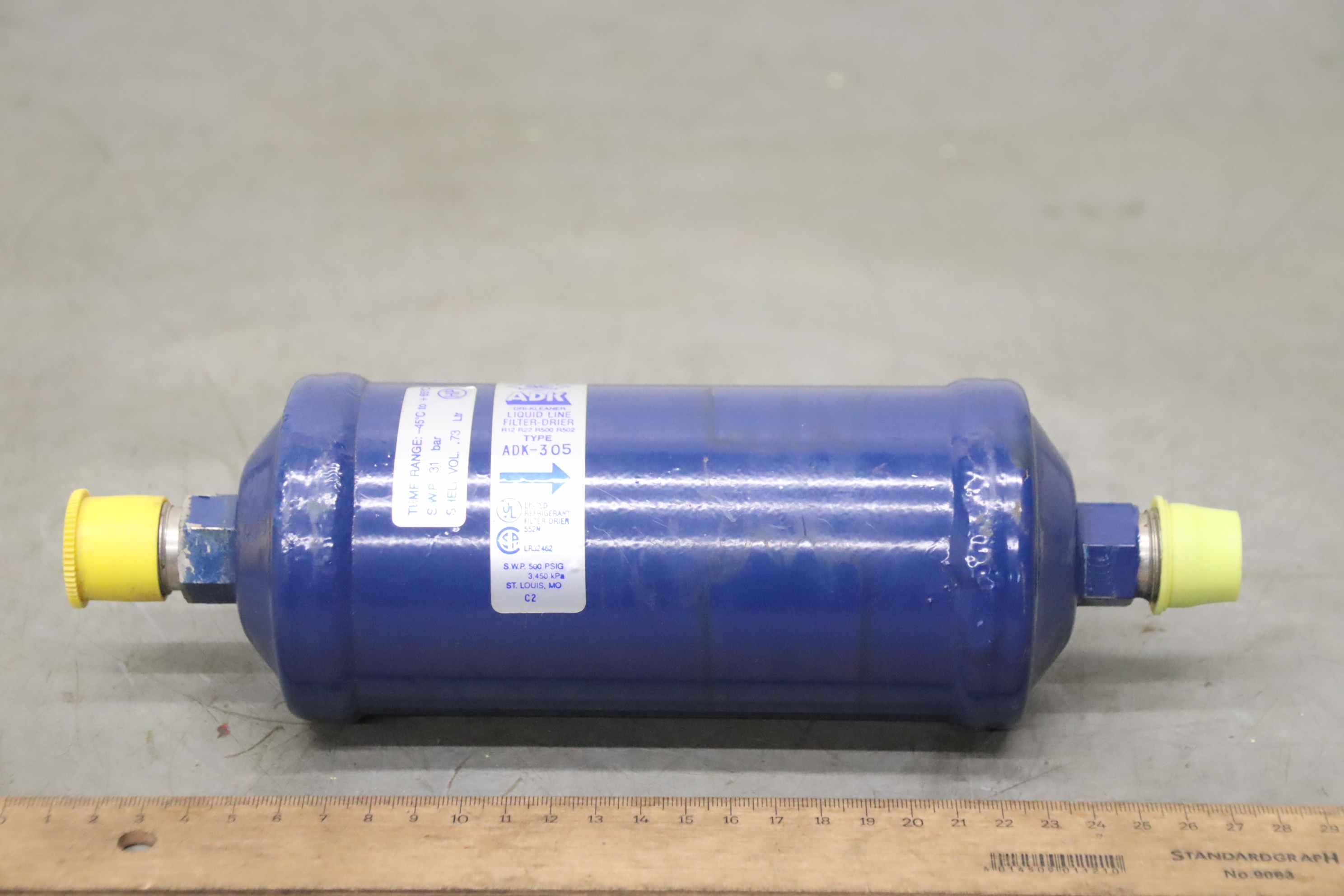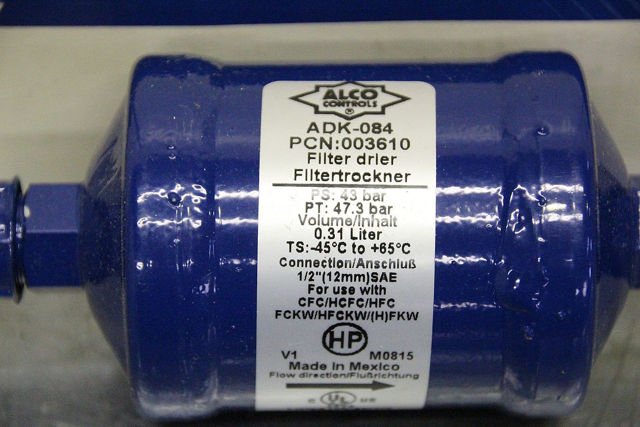 Refrigeration compressor, refrigeration unit, cooling compressor, refrigeration unit, cooling compressor, compressor, filter dryer housing, filter dryer -Manufacturer: Alco, filter dryer -Type: ADK-305 -Pressure: up to 31 bar -Contents: 0.73 liters -Dimensions: Ø 80 x 265 mm -Weight: 1.4 kg