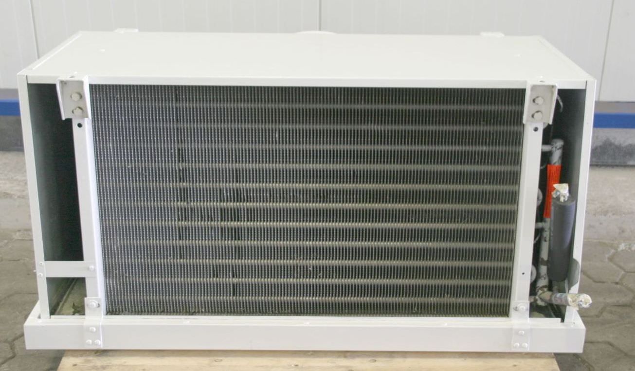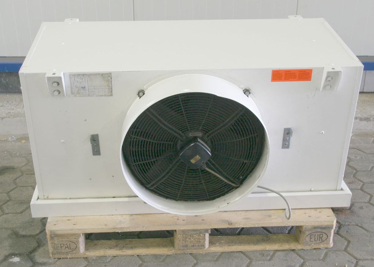 Air cooler, evaporator, cold storage, refrigerated container, cold room -Area of application: for connection to a cooling system -Fan diameter: 500 mm -Maximum permissible operating pressure: 8 bar -Permissible operating temperature: 100 °C -Pressure at sub-zero temperatures: 21 bar / -60 °C -Contents: 13.2 liters -Slat spacing: 7 mm -Number: 2x coolers available -Price: per piece -Dimensions: 1350/740/H700 mm -Weight: 174 kg/piece