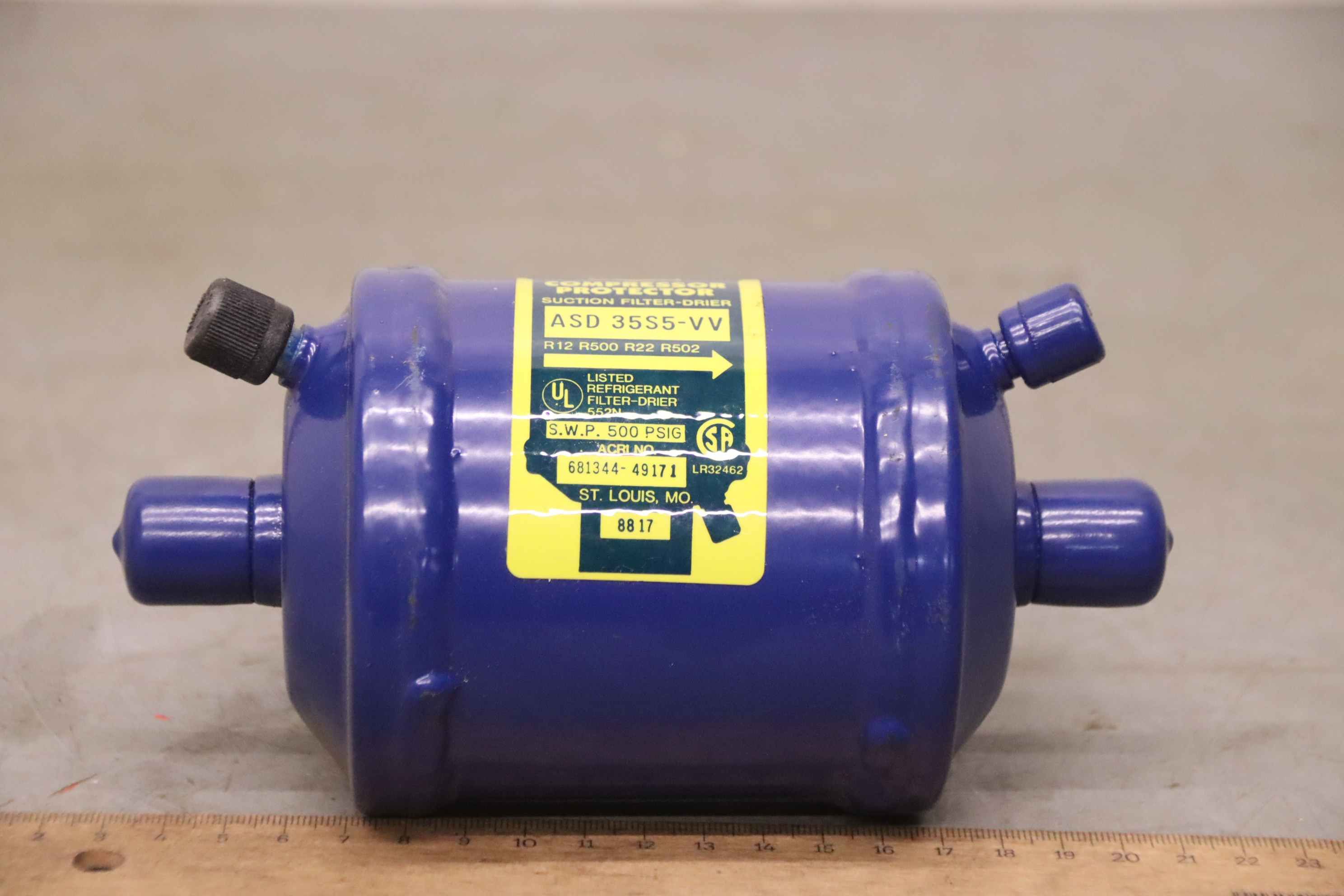 Refrigeration Compressor, Chiller, Refrigeration Compressor, Refrigeration Unit, Refrigeration Compressor, Compressor, Filter Dryer Housing, Filter Dryer, Compressor Protector-Manufacturer: Alco, Compressor Protector, unused original packaging-Type: ASD 35S5-VV-Pressure: up to 500 PSIG / 31 bar-Dimensions: Ø 93 x 180 mm-Weight: 1 kg