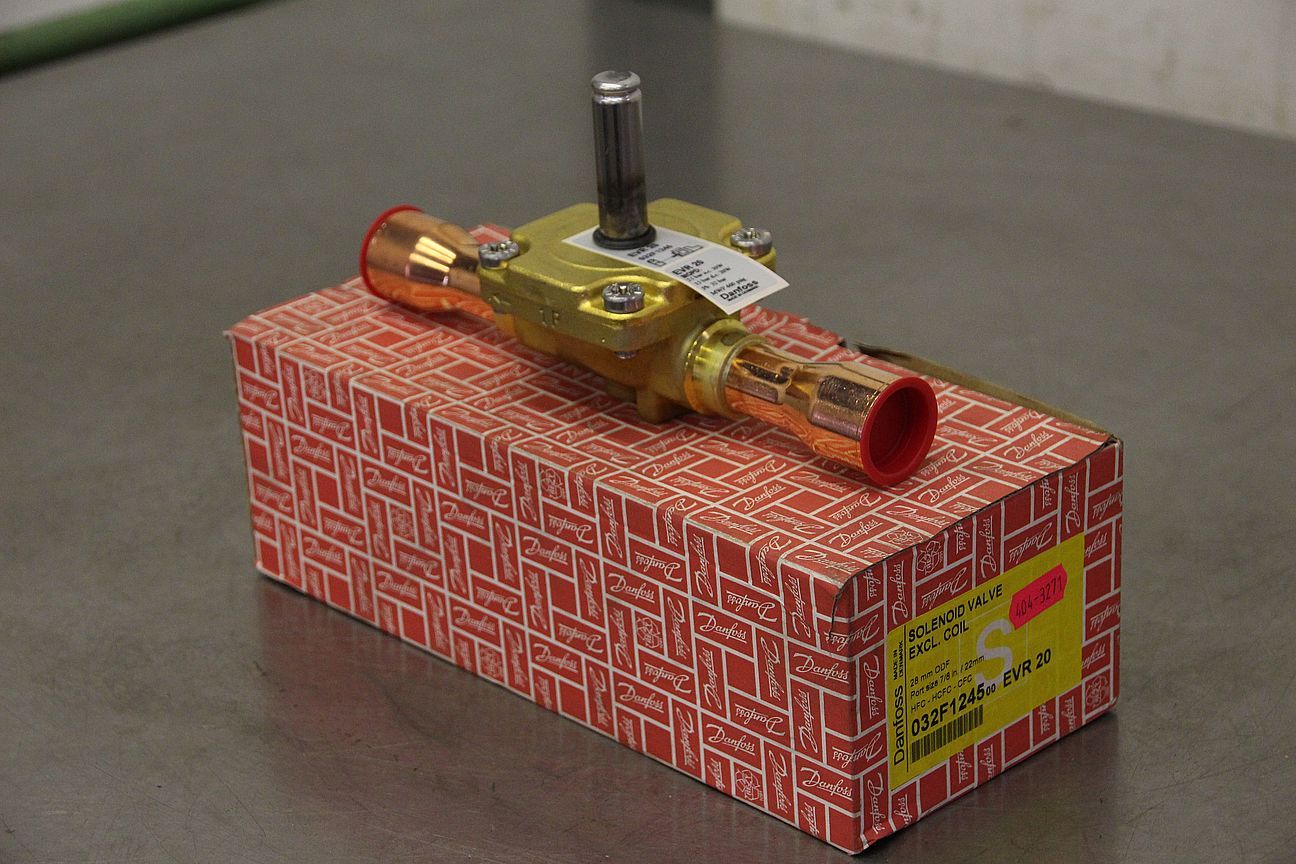 Refrigeration compressor, refrigeration machine, cooling compressor, refrigeration unit, cooling compressor, compressor, filter dryer housing, shut-off valve, ball shut-off valve, solenoid valve body-Manufacturer: Danfoss, solenoid valve for refrigeration, unused original packaging-Type: EVR 20/032F1245-Connection: 22 mm-Price: per piece-Number: 2 piece-Dimensions package: 275/120/H90 mm-Weight: 1.2 kg/piece