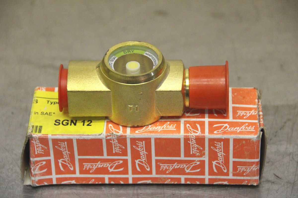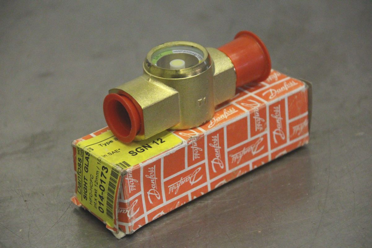 Refrigeration compressor, refrigeration machine, cooling compressor, refrigeration unit, cooling compressor, compressor, filter dryer housing, shut-off valve, ball shut-off valve, temperature switch, thermostat, expansion valve, thermo-expansion valve, indicator sight glass-Manufacturer: Danfoss, indicator sight glass, unused in original packaging-Type: SGN 12 HFC-HCFC 014-0173-Connections: 12 mm 1/2 SAE-Dimension package: 110/35/H30 mm-Weight: 0.2 kg