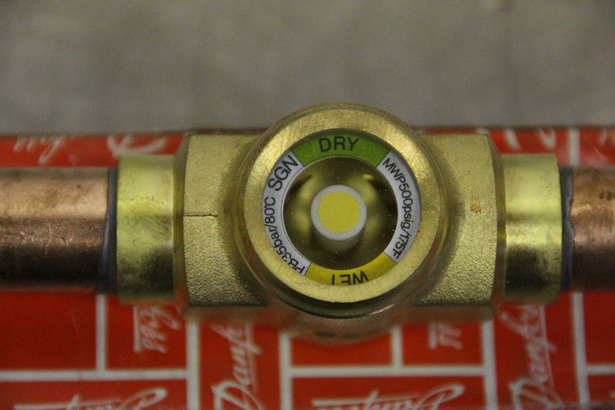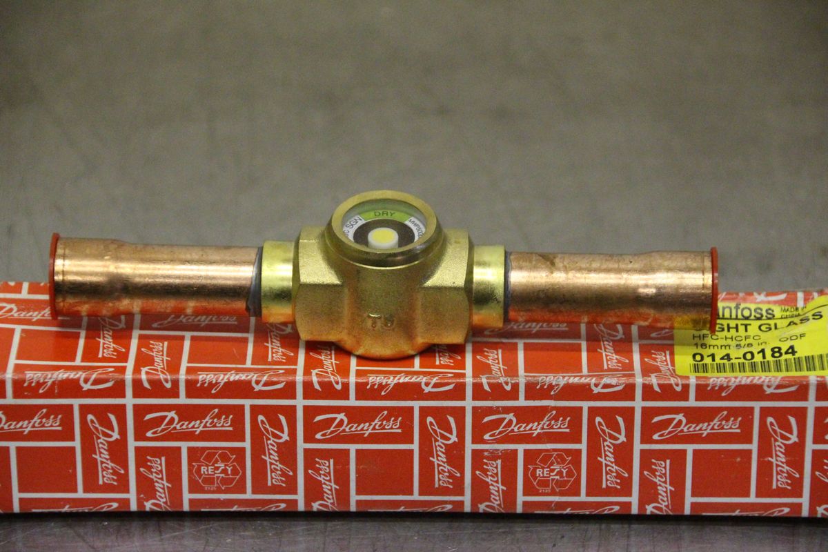 Refrigeration compressor, refrigeration machine, cooling compressor, refrigeration unit, cooling compressor, compressor, filter dryer housing, shut-off valve, ball shut-off valve, temperature switch, thermostat, expansion valve, thermo-expansion valve, indicator sight glass-Manufacturer: Danfoss, indicator sight glass, unused in original packaging-Type: SGN 16s HFC-HCFC 014-0184-Connections: 16 mm 5/8 ODF-Price: per piece-Number: 5 piece-Dimension package: 190/40/H40 mm-Weight: 0.2 kg/piece