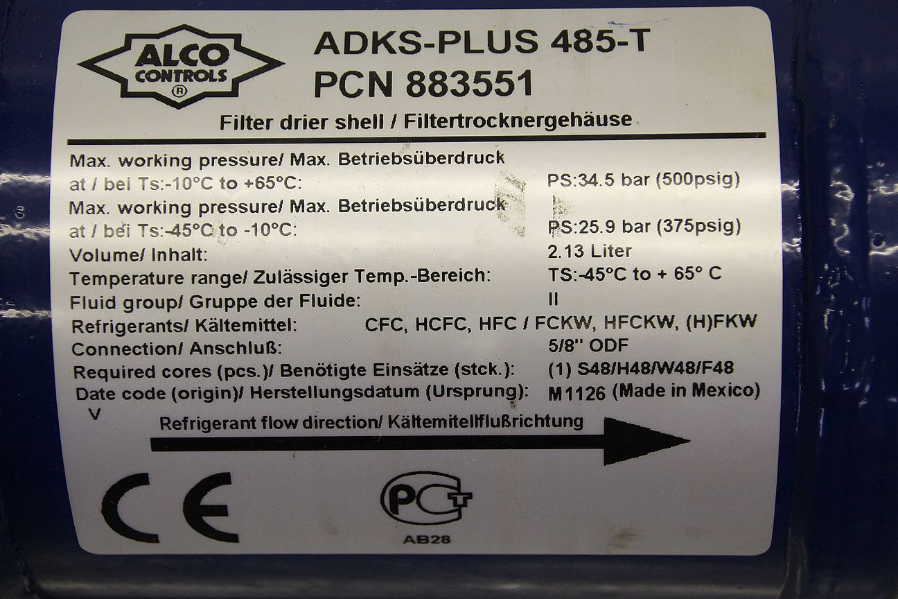 Refrigeration compressor, refrigeration machine, refrigeration compressor, refrigeration unit, refrigeration compressor, compressor, filter dryer housing-Manufacturer: Alco, filter drier housing unused in original packaging-Type: ADKS-PLUS 969-T/PCN 883556-Max. Operating pressure: 34.5 bar-Connection: 1-1/8 -Dimension package: 330/200/H160 mm-Weight: 4.1 kg