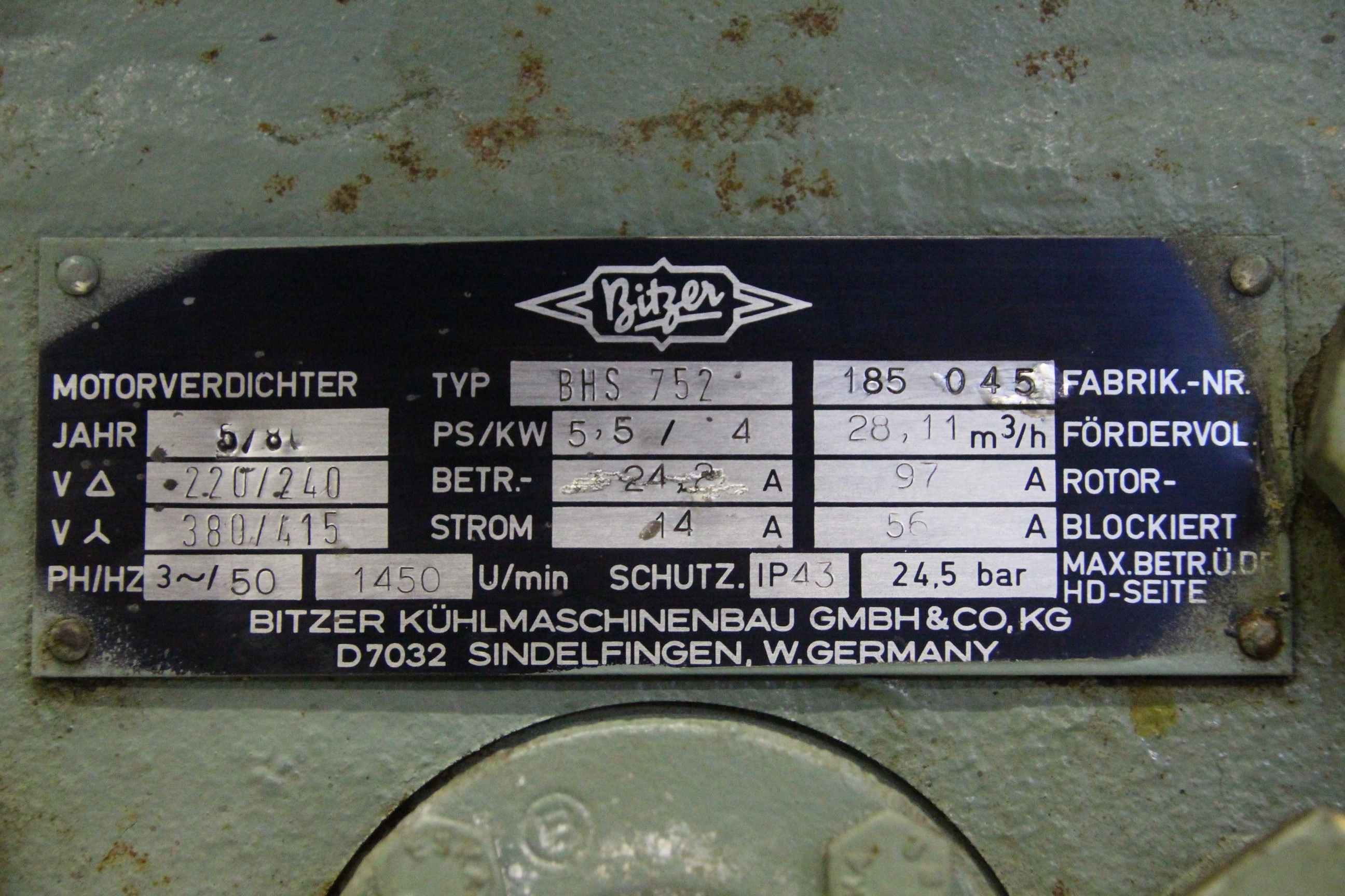 Refrigeration compressor, refrigeration unit, cooling compressor, refrigeration unit, cooling compressor, compressor, motor compressor, cooling machine -Manufacturer: Bitzer, Compressor Motor Compressor -Type: BHS 752 -Power: 4 kW / 1450 rpm -Volume flow rate: 28.11 m³/h -Max. operating pressure: 24.5 bar -Dimensions: 640/450/H425 mm -Weight: 131 kg