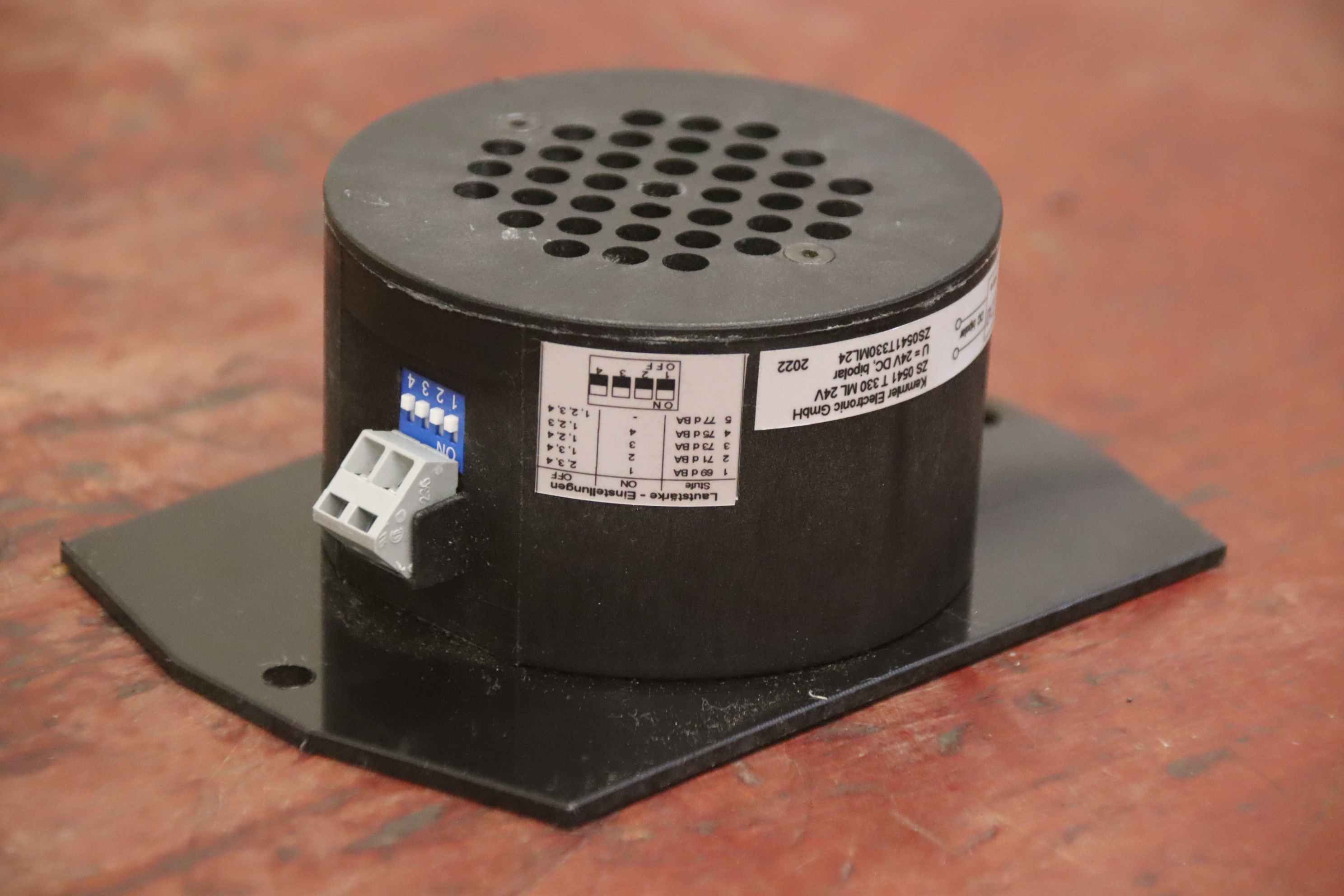 loudspeaker, Waterlight Horn-Manufacturer: Kemmler, Loudspeaker -Type. ZS 0541 T330 ML 24V-Volume: 69 to 77 d BA-Dimensions: 130/90/H50 mm-Weight: 0.2 kg