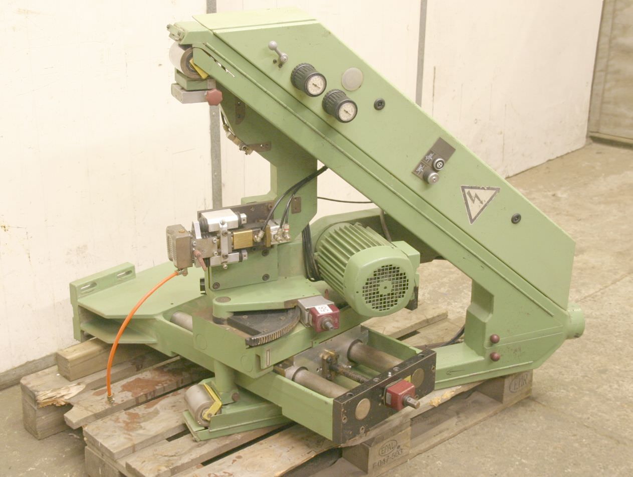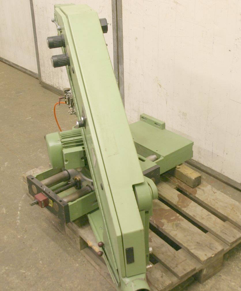 Modular unit, finishing unit, sanding unit, sanding station, belt sander, belt sander, edge sander, edge sanding machine, profile sanding unit, small belt sander -comes from a Homag edge banding machine -swivelling -height adjustable -Max. Sanding belt width: 80 mm -oscillated -Sanding shoe: with air cushion -Drive: 1.1/1.4 kW -Speed: 1425/2850 rpm -Sanding shoe dimensions: L/W mm -Dimensions: 1000/1200/H1000 mm -Weight: 292 kg/piece