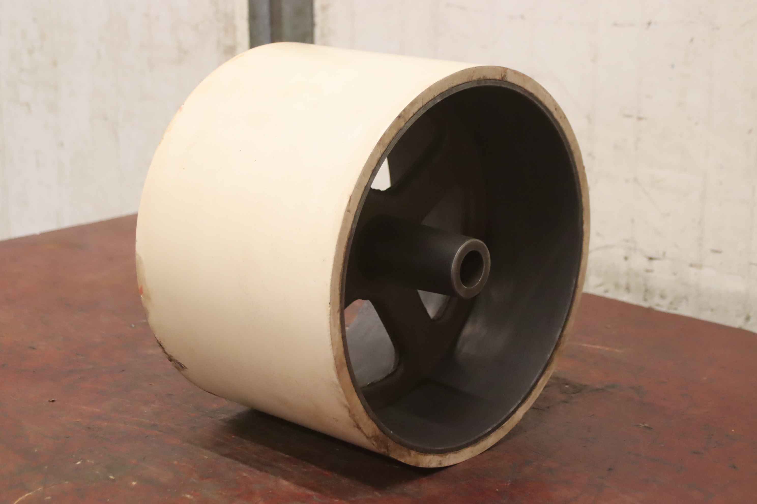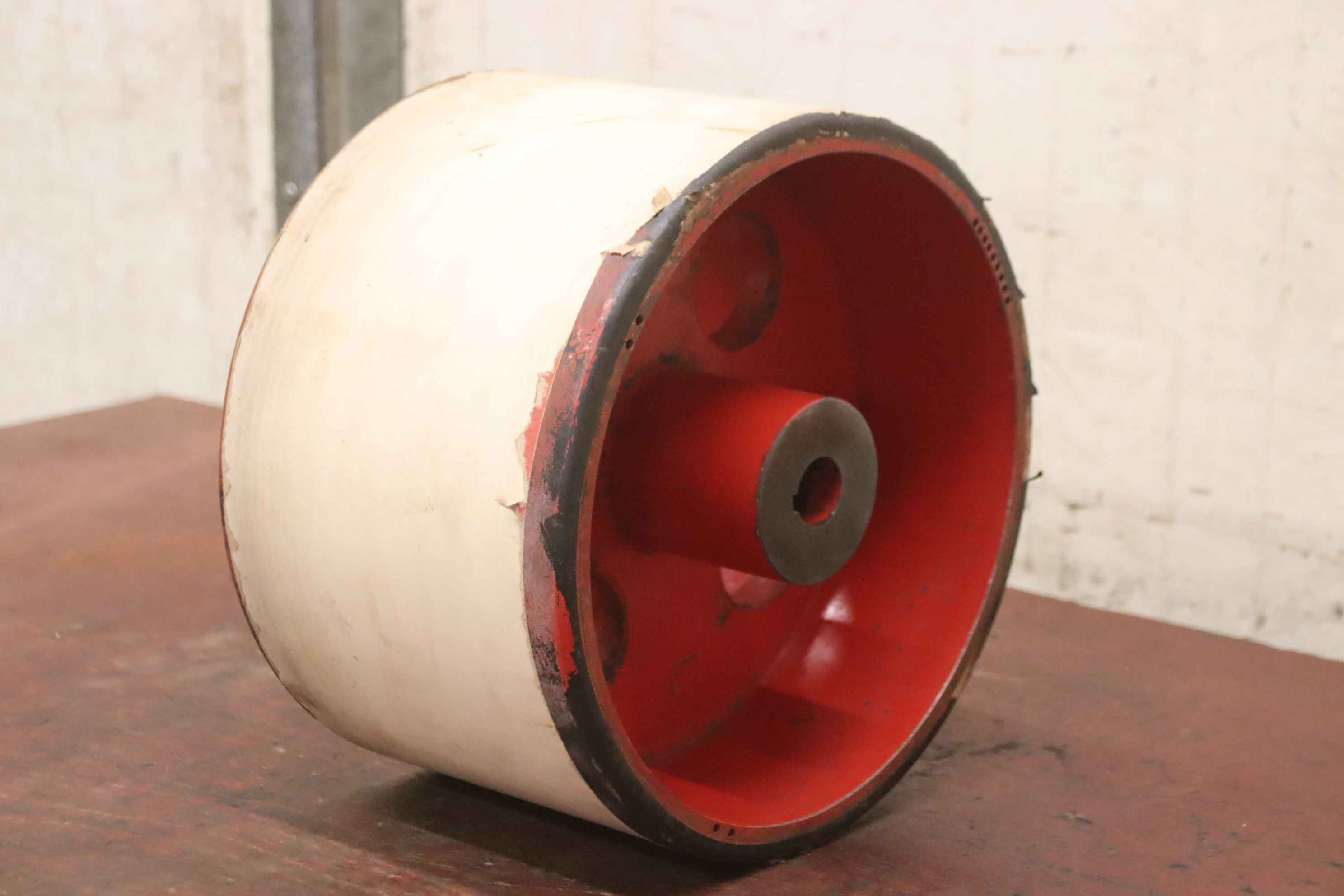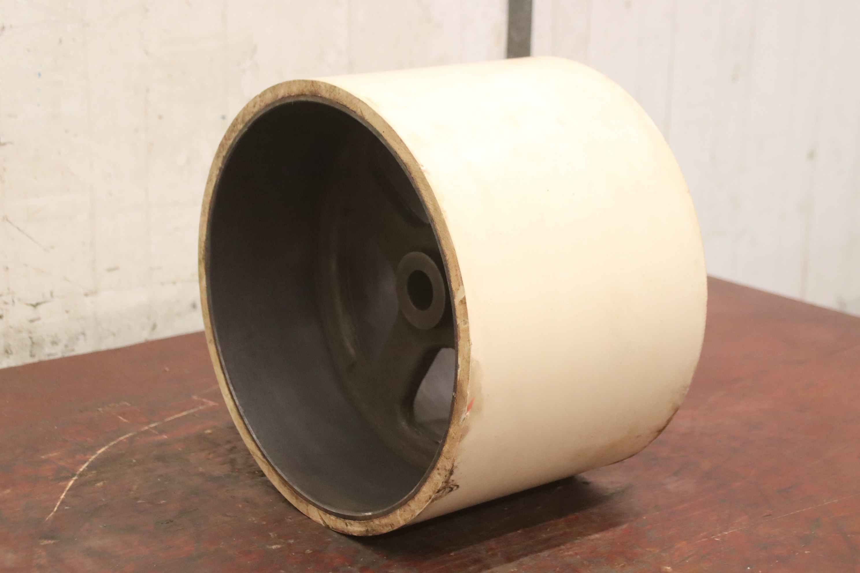 grinding drum, deflection drum, belt sander, belt grinder, drum sander, drum sander, conveyor belt rollers, transport rollers, replacement rollers, conveyor belt, roller conveyor, support rollers -Manufacturer: KED Kurt Ehemann, grinding drum drum width 200 mm -Drum: Ø 320 mm -Hole: Ø 30 x 200 mm -Number: 2x drum available -Price: per piece -Dimensions: Ø 320 x 200 mm -Weight: 26.6 kg/piece