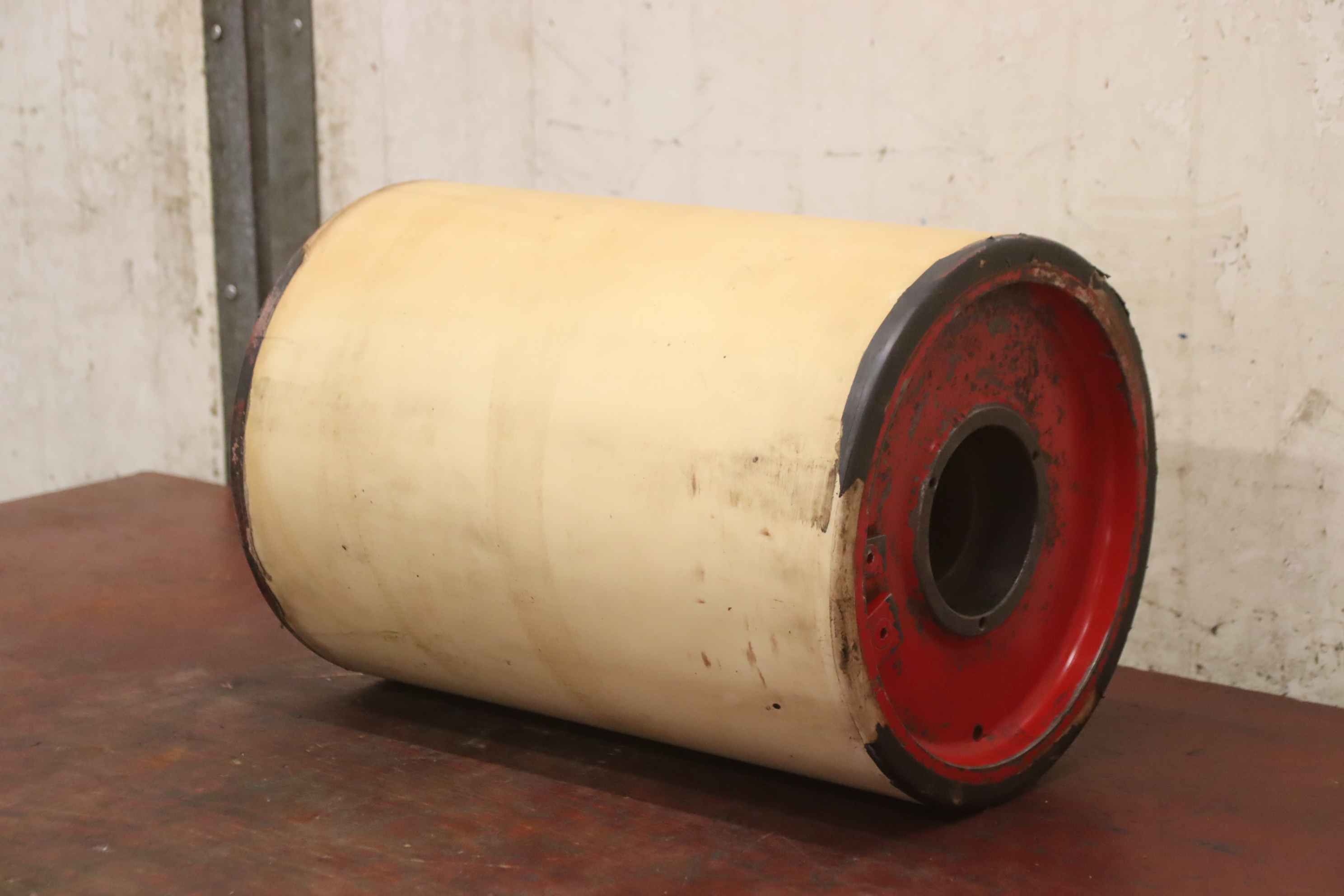 grinding drum, deflection drum, belt sander, belt grinder, drum sander, drum sander, conveyor belt rollers, transport rollers, replacement rollers, conveyor belt, roller conveyor, support rollers -Manufacturer: KED Kurt Ehemann, grinding drum drum width 430 mm -Drum: Ø 300 mm -Hole: Ø 77 x 400 mm -Number: 13x drum available -Price: per piece -Dimensions: Ø 300 x 430 mm -Weight: 44.8 kg/piece