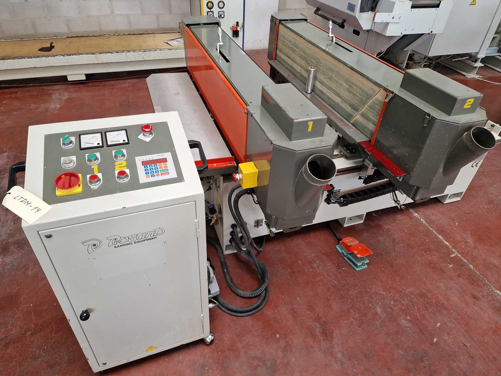 - Total installed power 48 KW. - Sanding width 1350 mm. - Motorized height positioning with digital reader. - Variable feed speed from 4 m/min to 20 m/min. - 2.20 KW advance motor. - Group 1: grooved steel gauging roller, belt dimensions 2620 x 1380 mm, motor 18.50 KW. - Group 2: grooved rubber gauging roller, belt dimensions 2620 x 1380 mm, 15 KW motor. - Group 3: grooved rubber sanding roller, belt dimensions 2620 x 1380 mm, motor 11 KW. - Operating conditions of this machine: unchecked. - This item is delivered loaded by truck. The costs of dismantling and loading are those that are specified as additional costs. Auction-ID: A7-44536-25